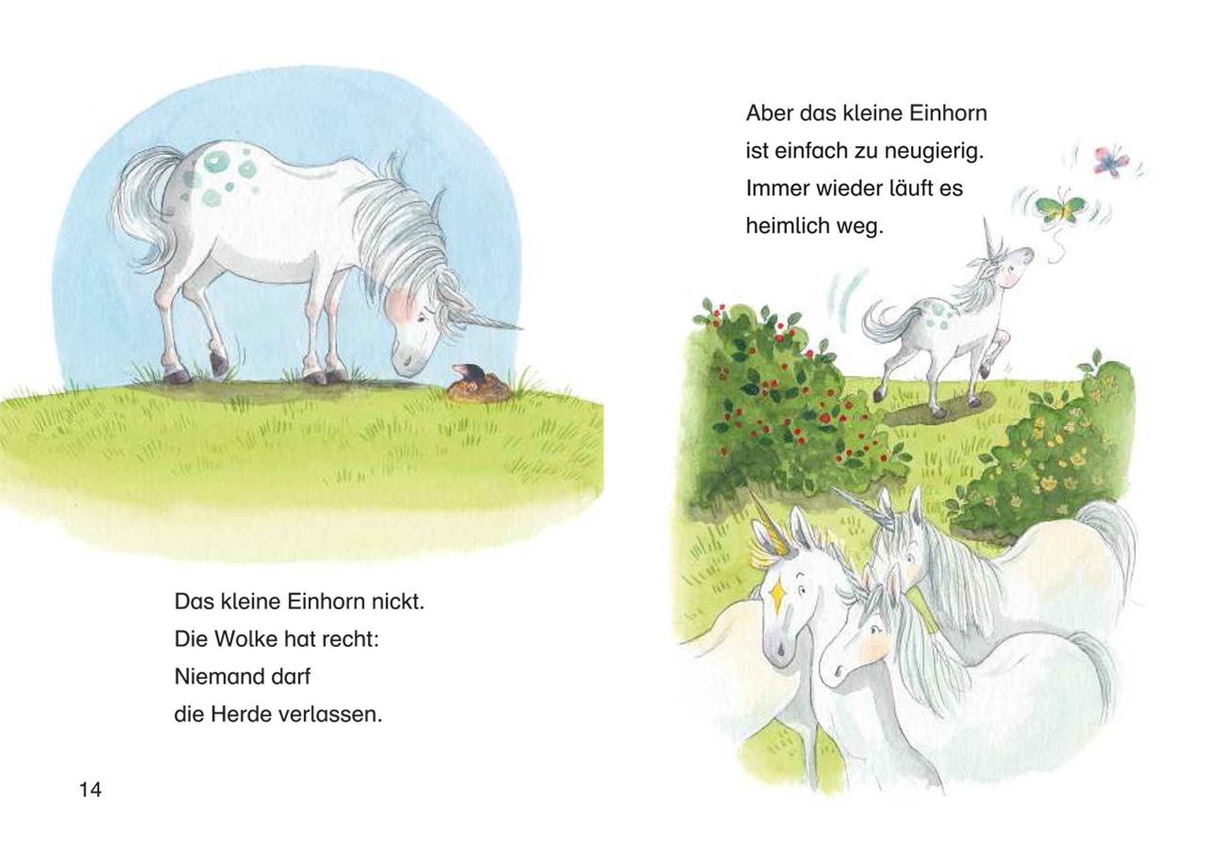 Das kleine Einhorn ist sehr neugierig und will alles erkunden - doch plötzlich steht es ganz allein auf der Wiese. Seine Herde ist weg! Schnell macht das Einhorn sich auf die Suche und begegnet dabei einem funkelnden Stern, der vom Himmel gepurzelt ist. Finden sie gemeinsam den Weg nach Hause?