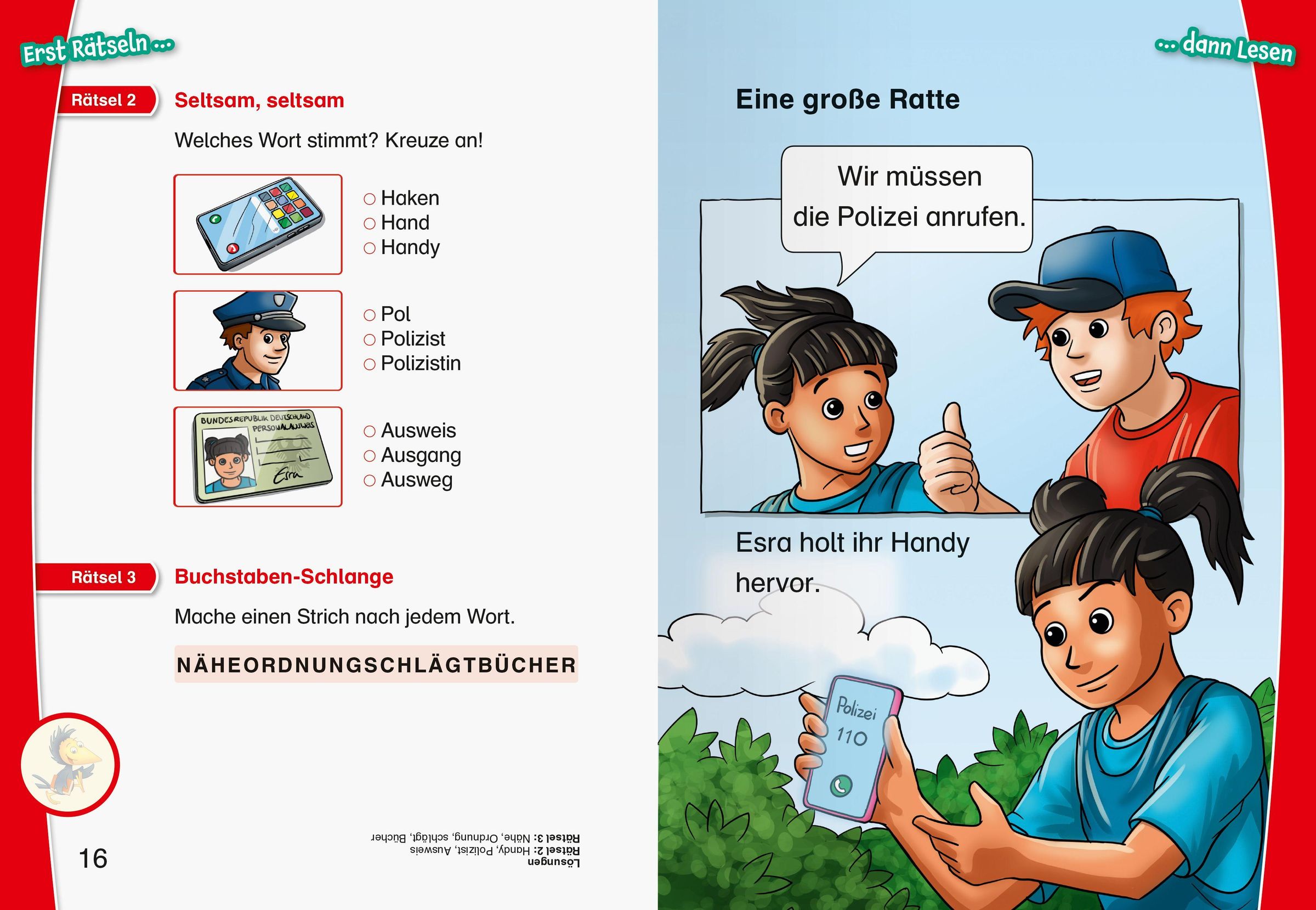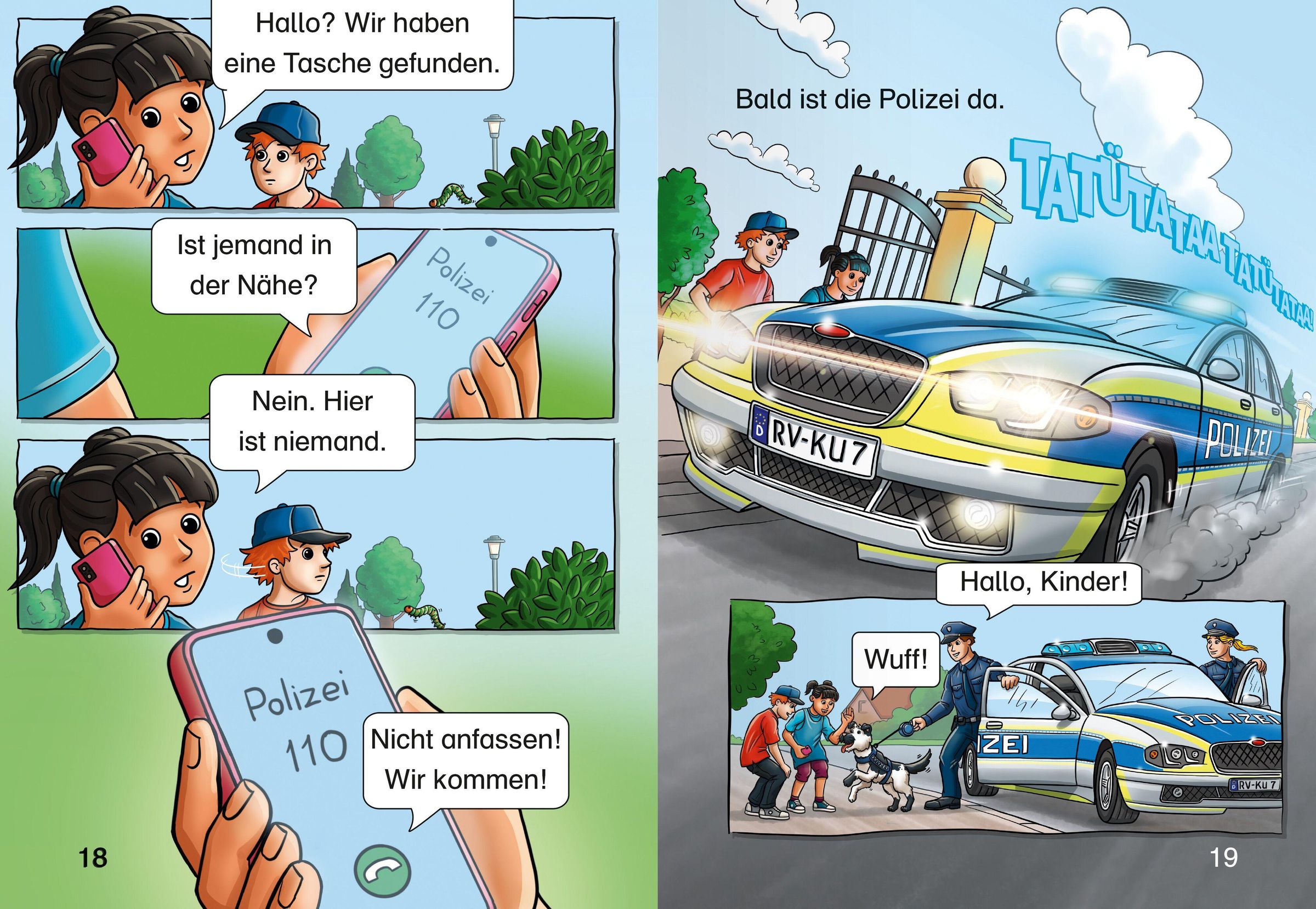 Esra und Ben sind im Park. Im Busch findet Esra eine Tasche. Ist da eine Bombe drin? Die Kinder rufen die Polizei. Und die kommt mit Hund und einer Polizei-Ratte! Eine spannende Polizeigeschichte für absolute Leseanfänger.