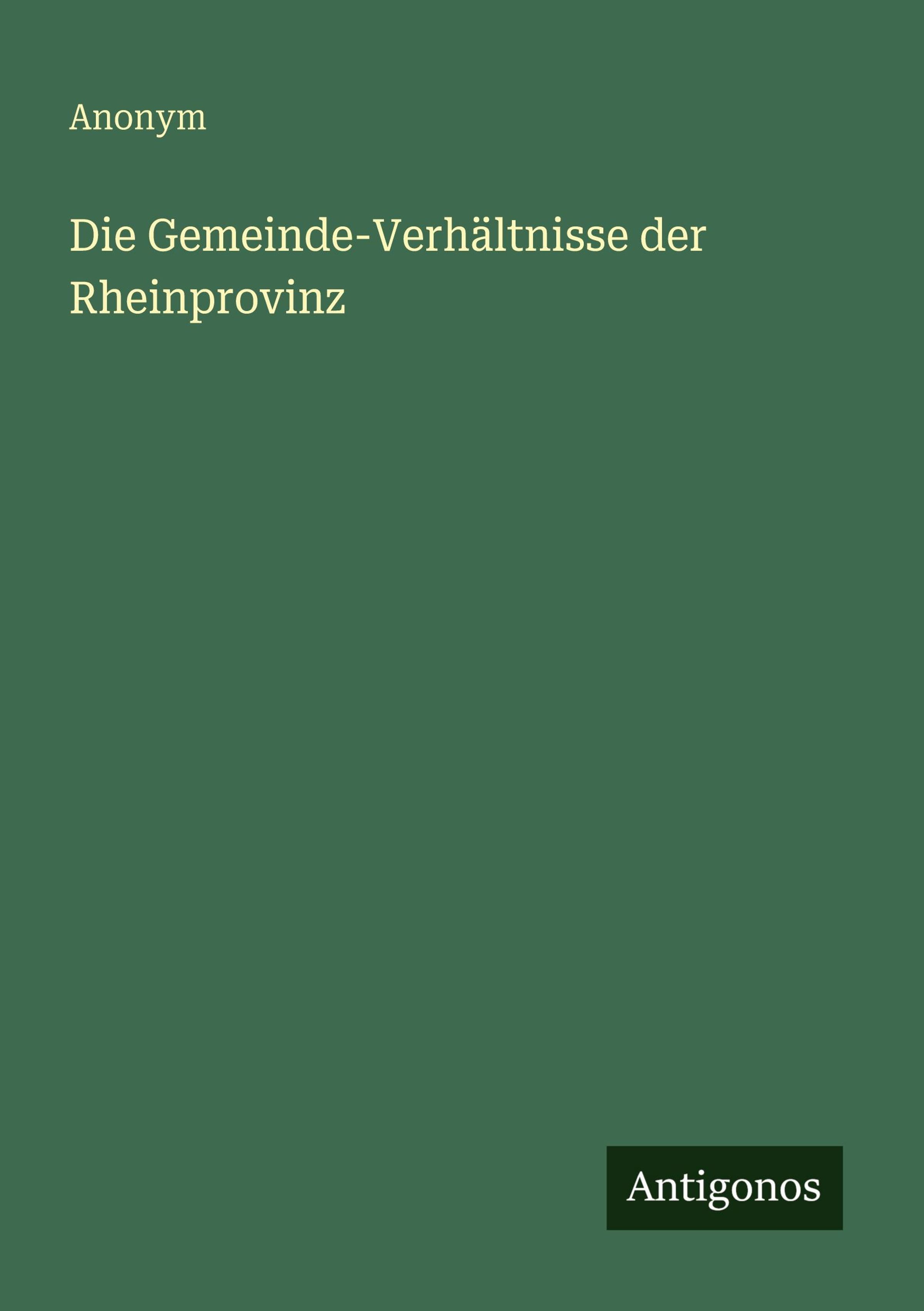 Anonym: Die Gemeinde-Verhältnisse der Rheinprovinz, Kartoniert / Broschiert