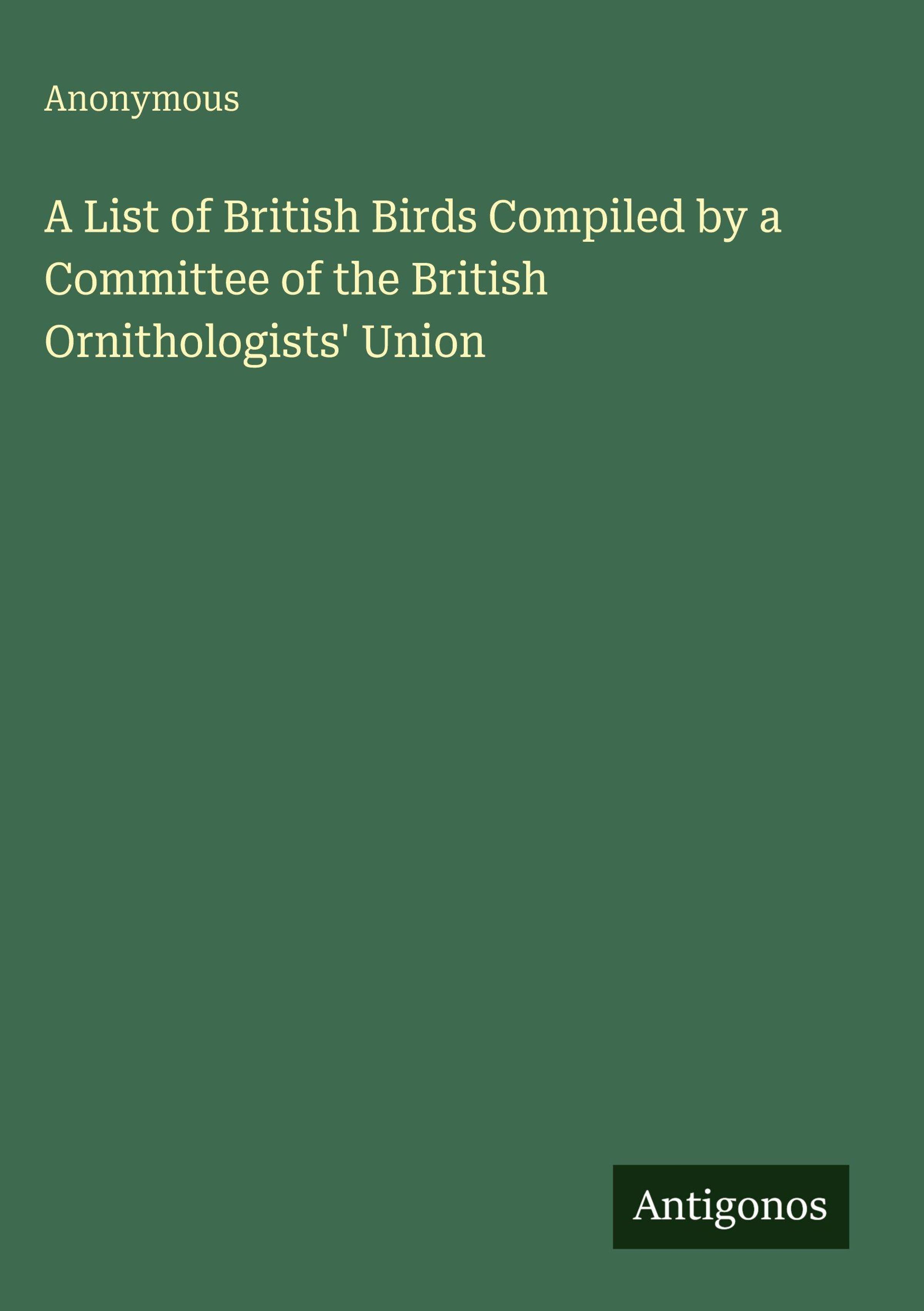 Anonymous: A List of British Birds Compiled by a Committee of the British Ornithologists' Union, Gebunden