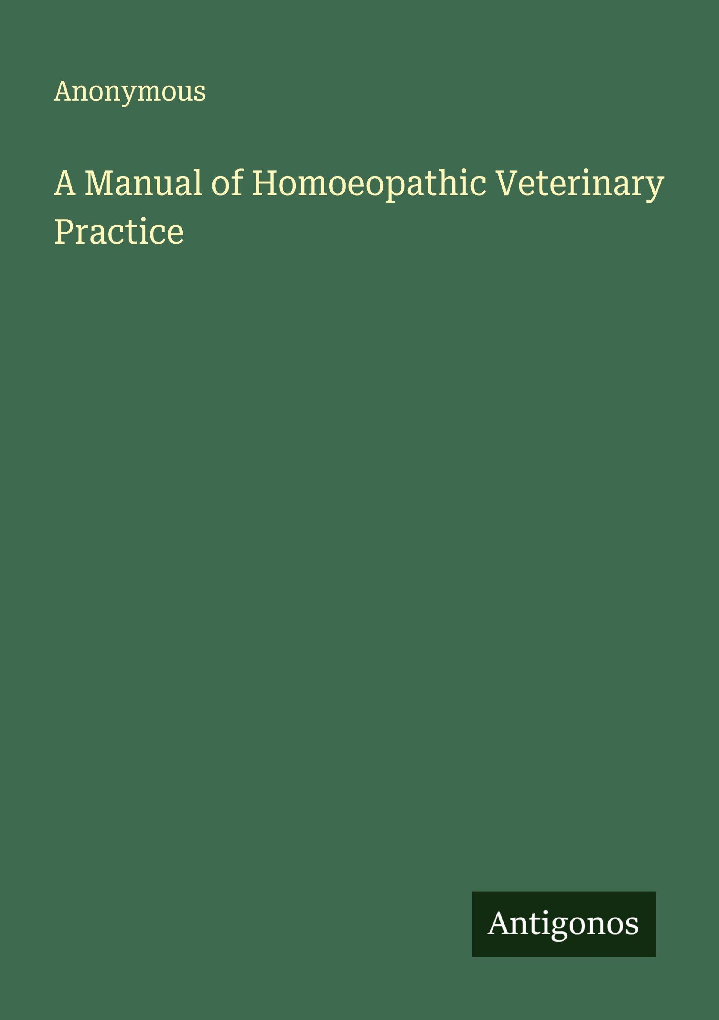 Anonymous: A Manual of Homoeopathic Veterinary Practice, Kartoniert / Broschiert