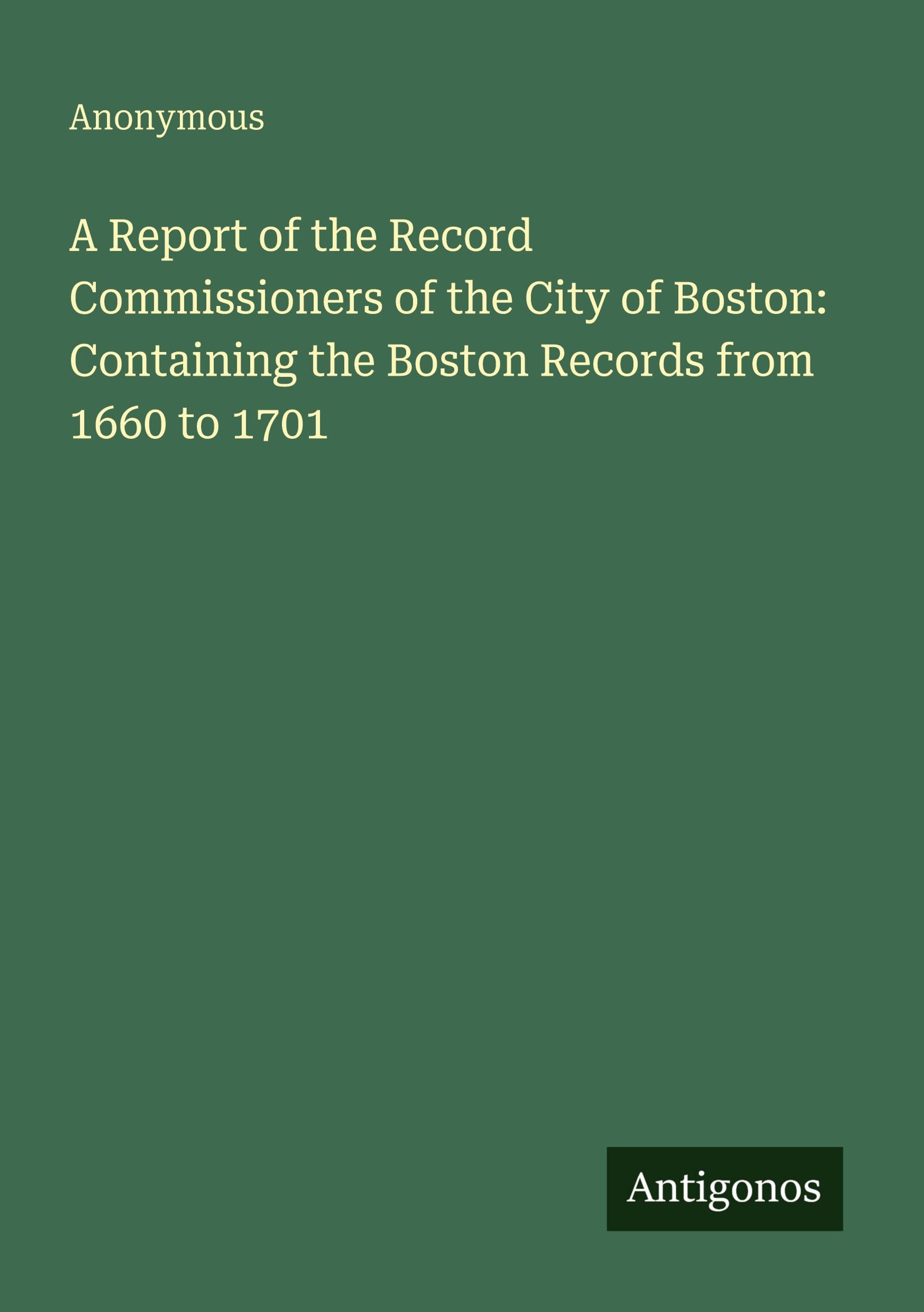 Anonymous: A Report of the Record Commissioners of the City of Boston: Containing the Boston Records from 1660..., Kartoniert / Broschiert