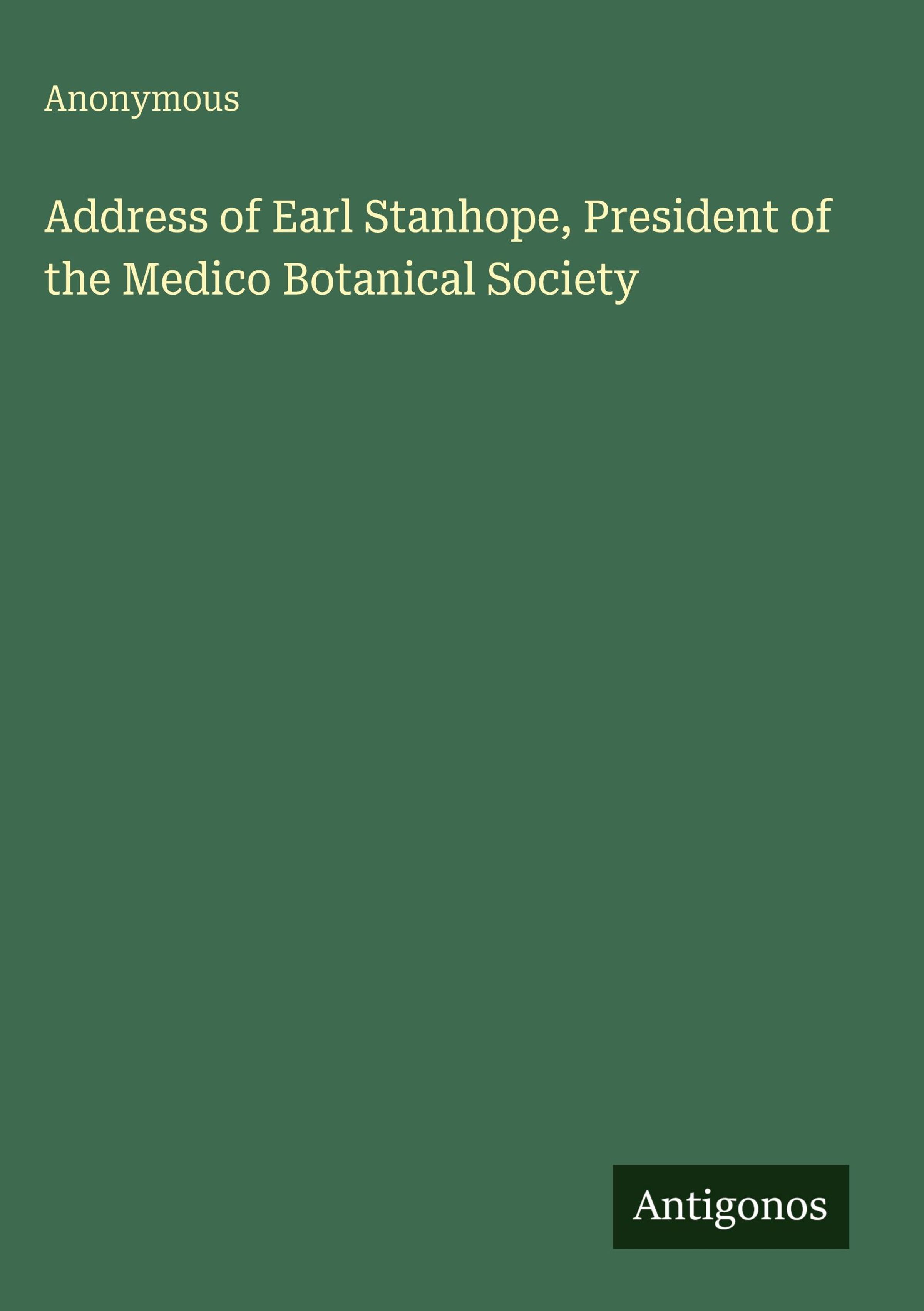 Anonymous: Address of Earl Stanhope, President of the Medico Botanical Society, Gebunden