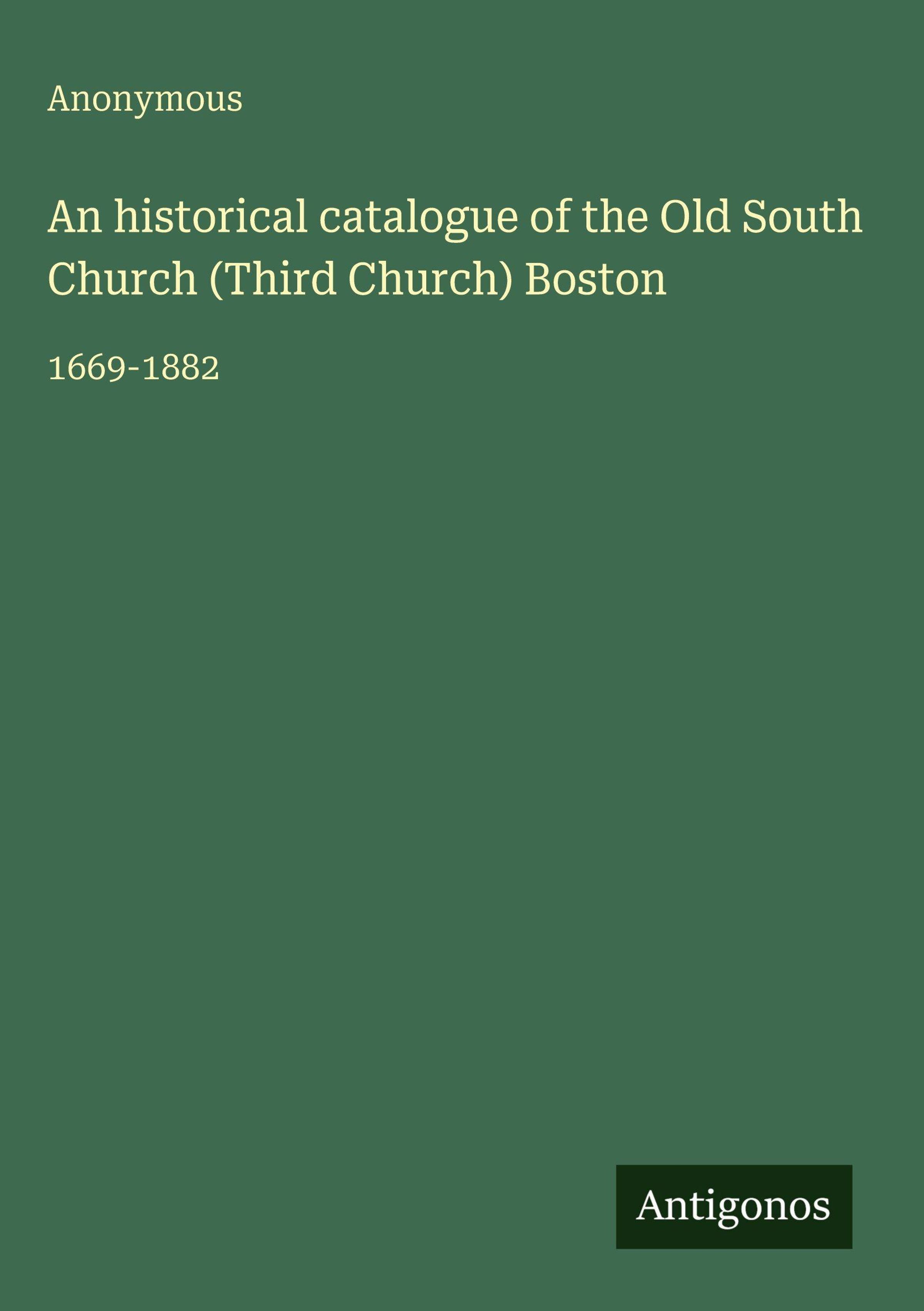 Anonymous: An historical catalogue of the Old South Church (Third Church) Boston, Gebunden