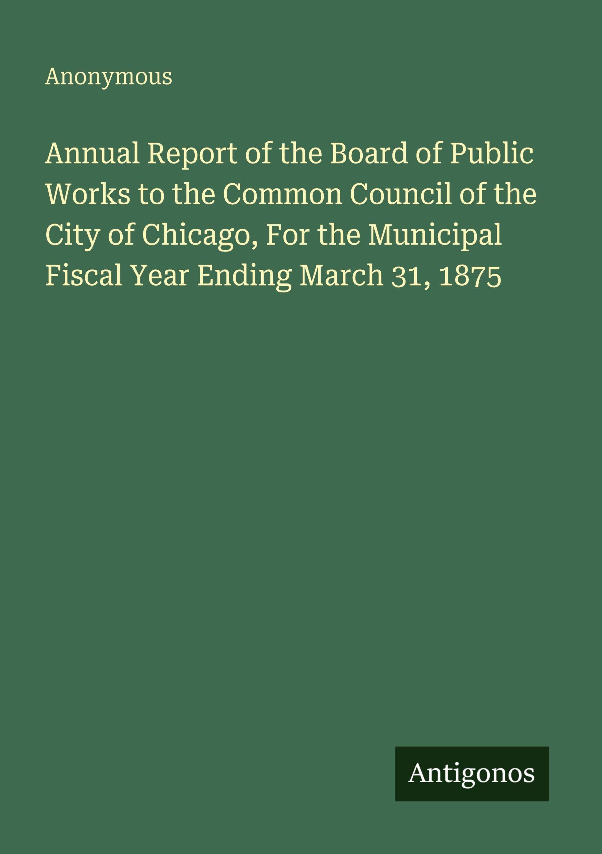 Annual Report of the Board of Public Works to the Common Council of the City of Chicago, For the Municipal Fiscal Year Ending March 31, 1875