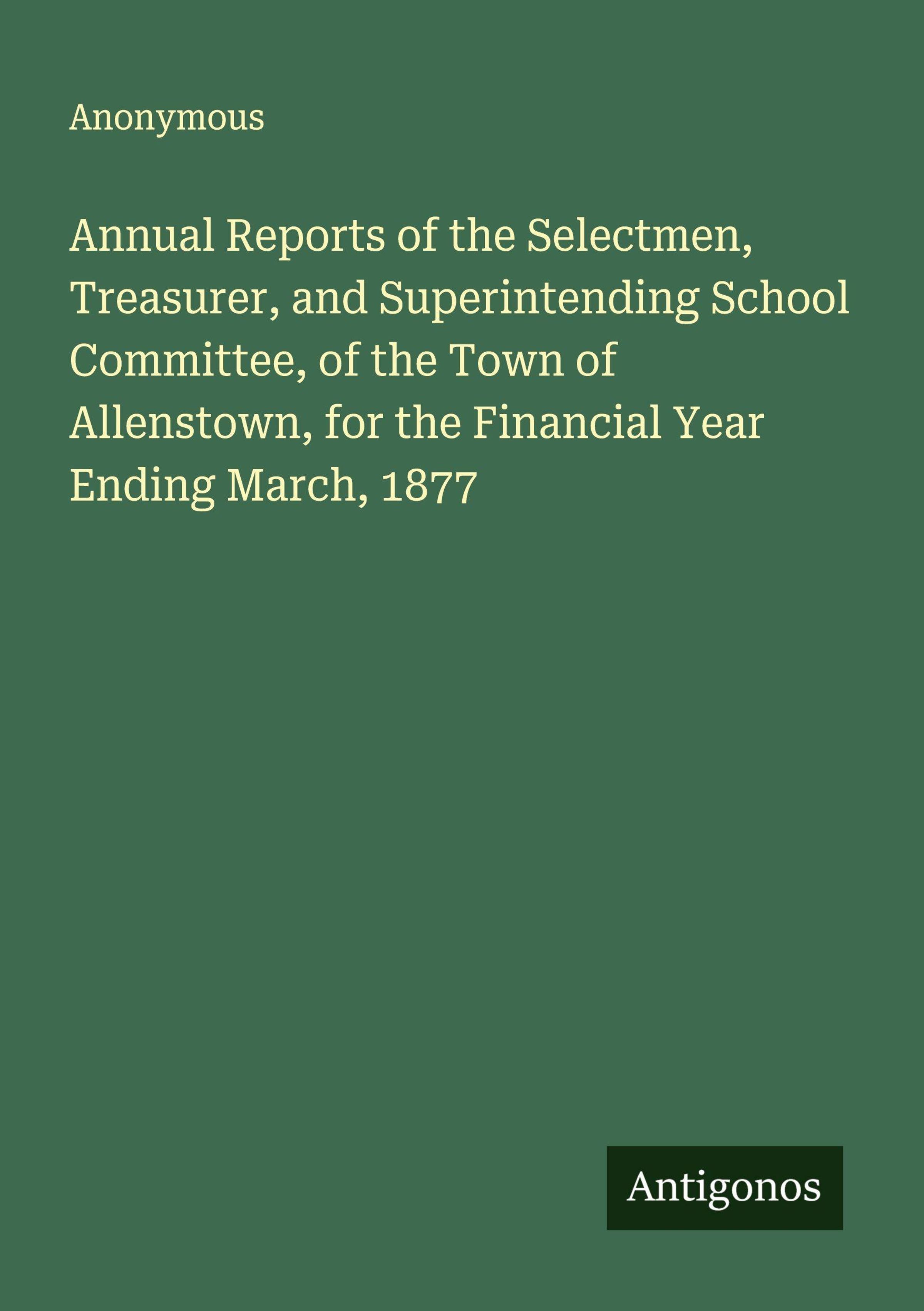 Annual Reports of the Selectmen, Treasurer, and Superintending School Committee, of the Town of Allenstown, for the Financial Year Ending March, 1877