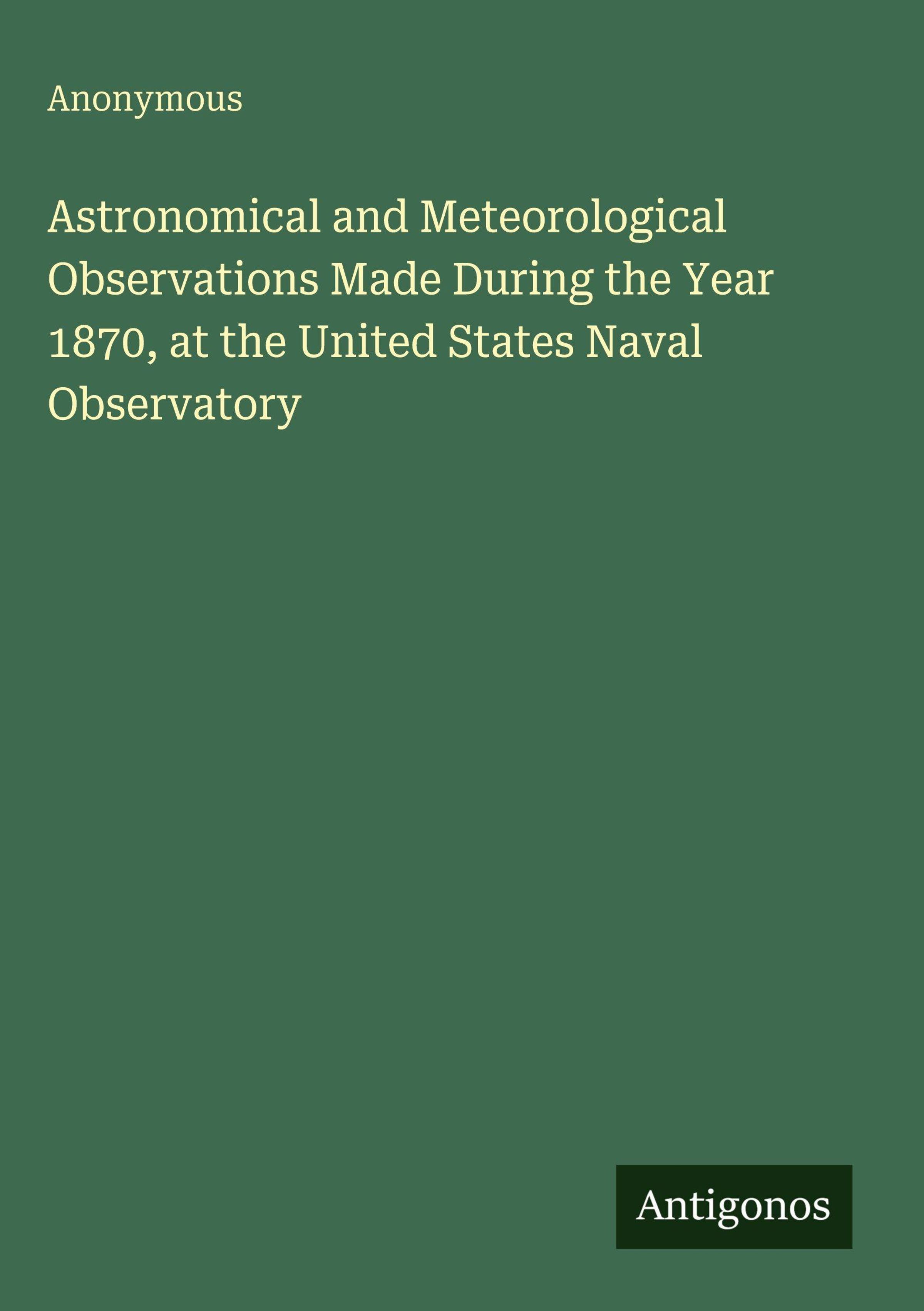 Anonymous: Astronomical and Meteorological Observations Made During the Year 1870, at the United States Naval..., Gebunden