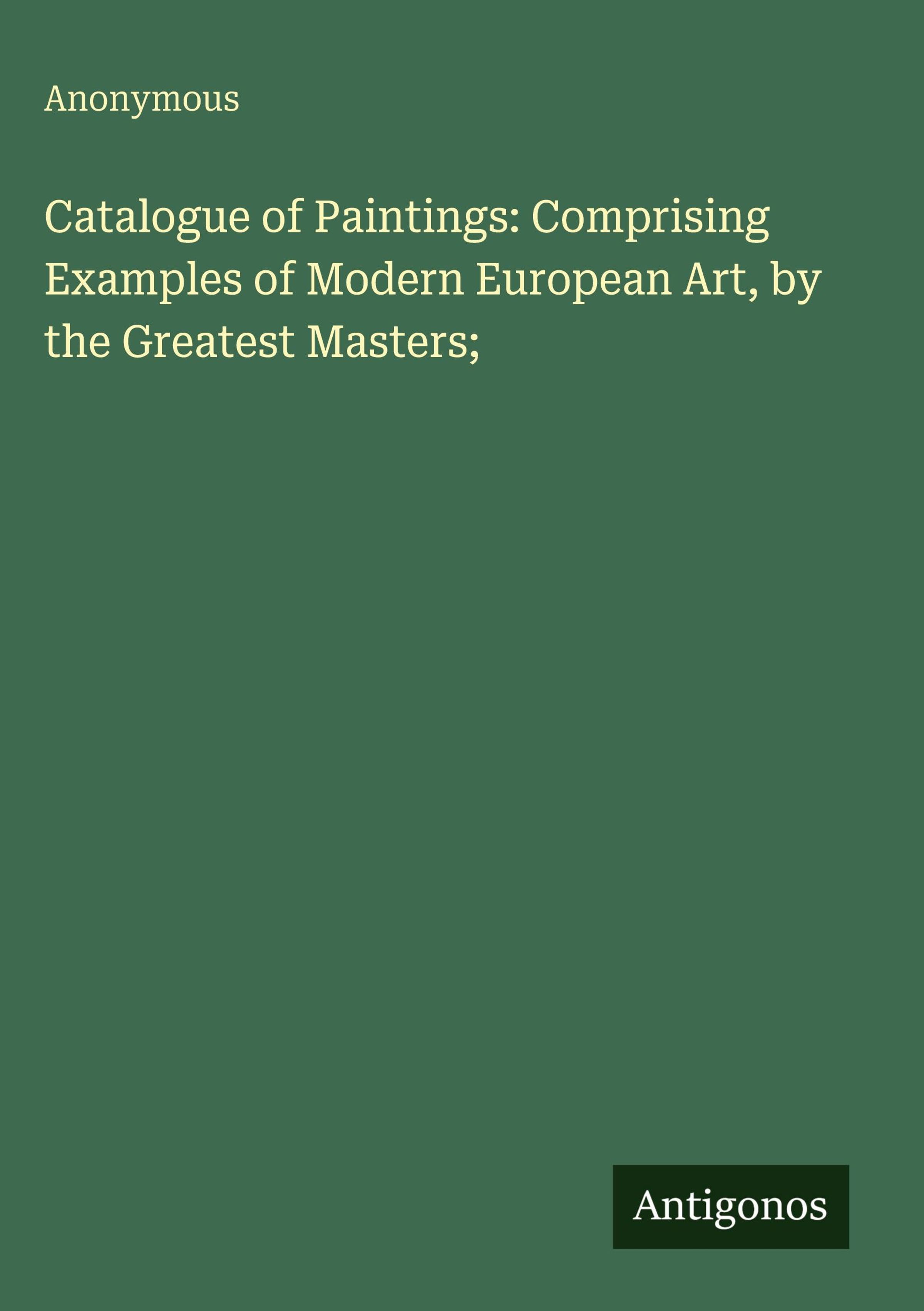 Anonymous: Catalogue of Paintings: Comprising Examples of Modern European Art, by the Greatest Masters;, Gebunden