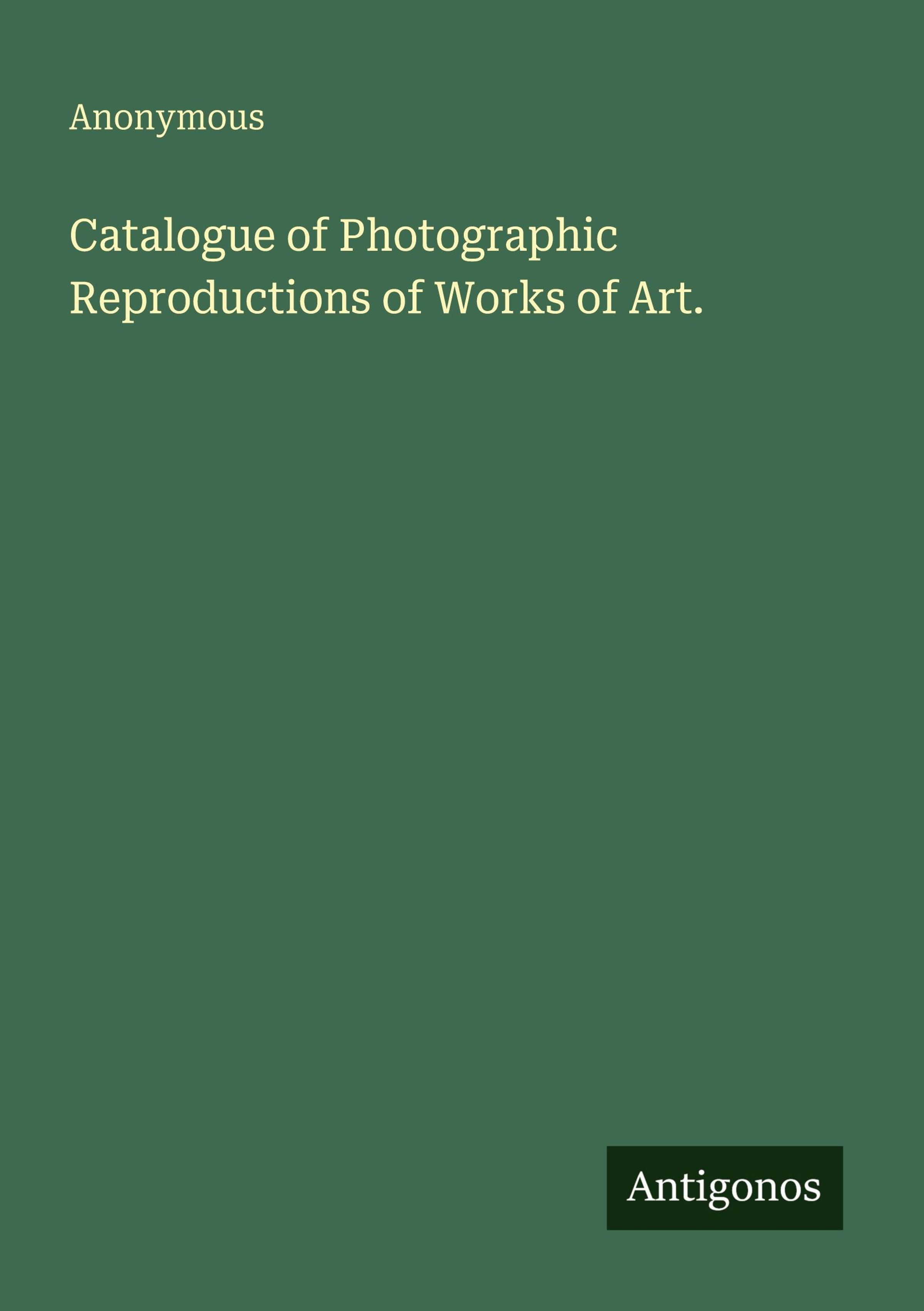 Anonymous: Catalogue of Photographic Reproductions of Works of Art., Kartoniert / Broschiert
