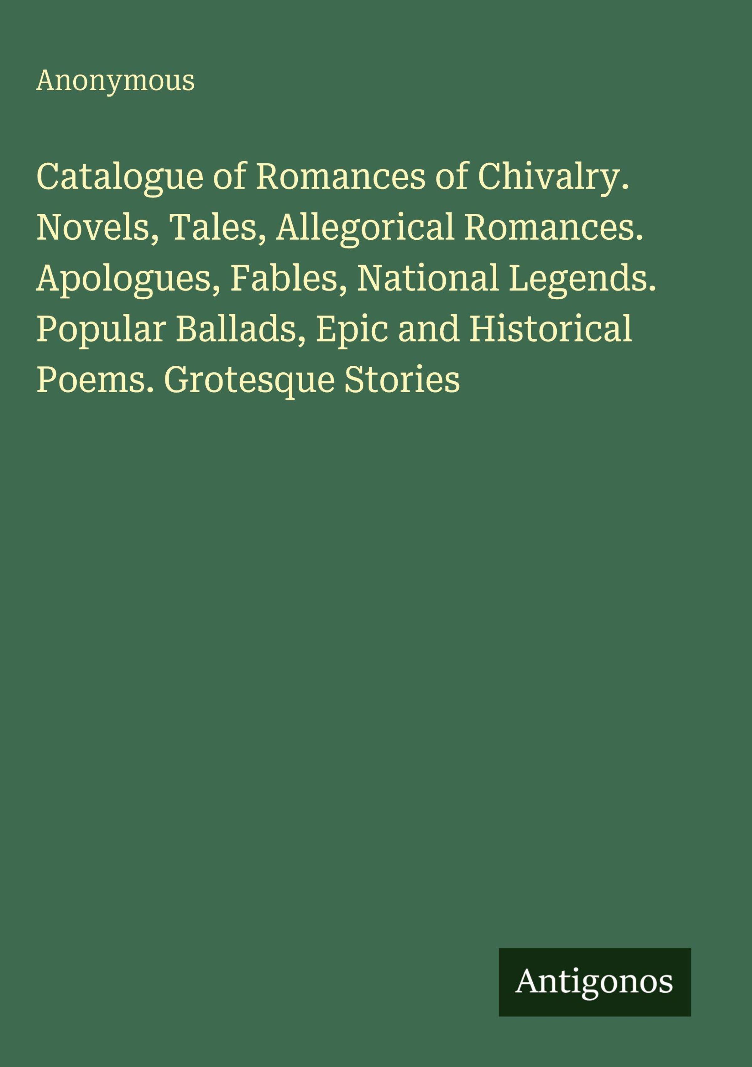 Catalogue of Romances of Chivalry. Novels, Tales, Allegorical Romances. Apologues, Fables, National Legends. Popular Ballads, Epic and Historical Poems. Grotesque Stories