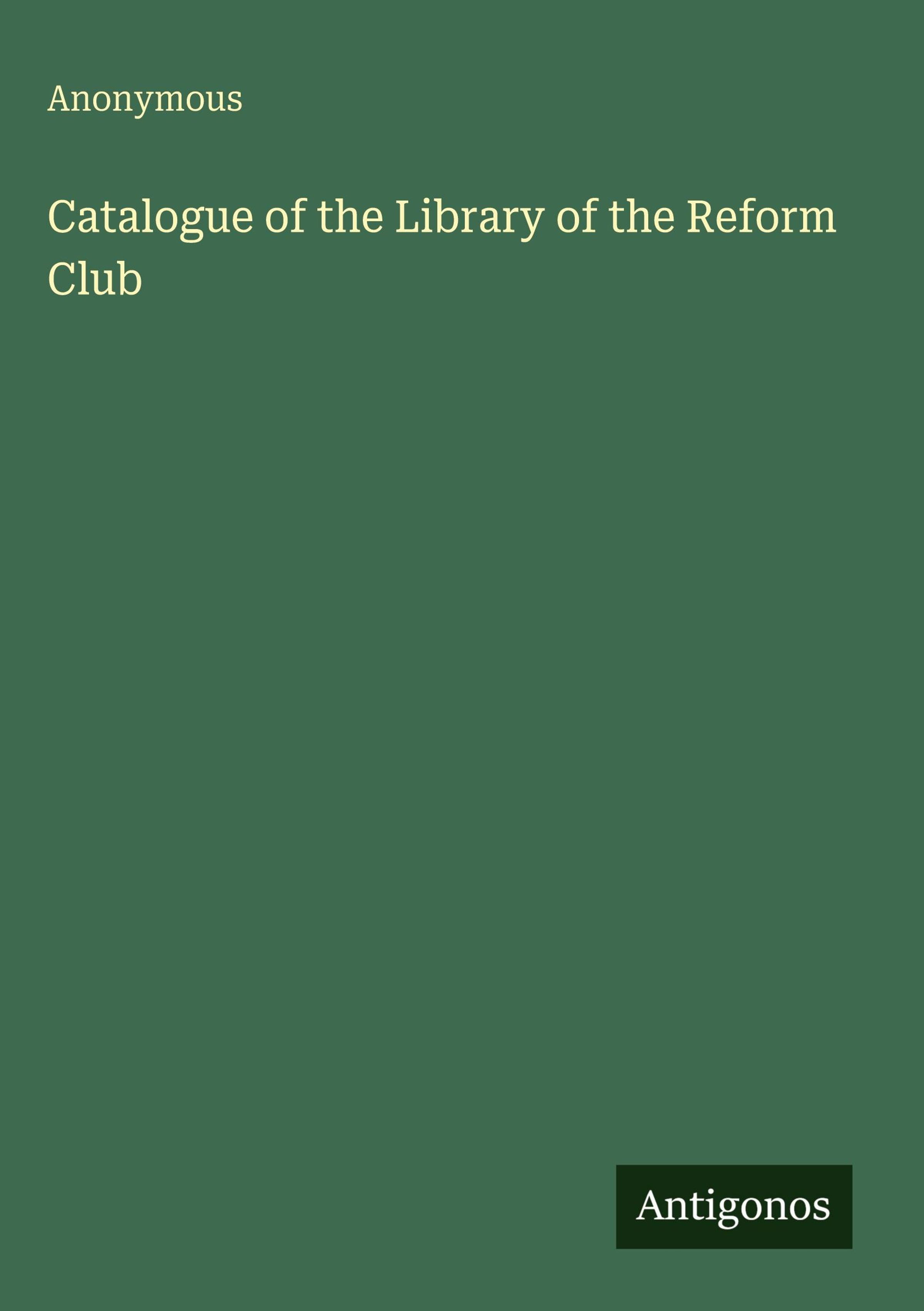 Anonymous: Catalogue of the Library of the Reform Club, Buch, Buch