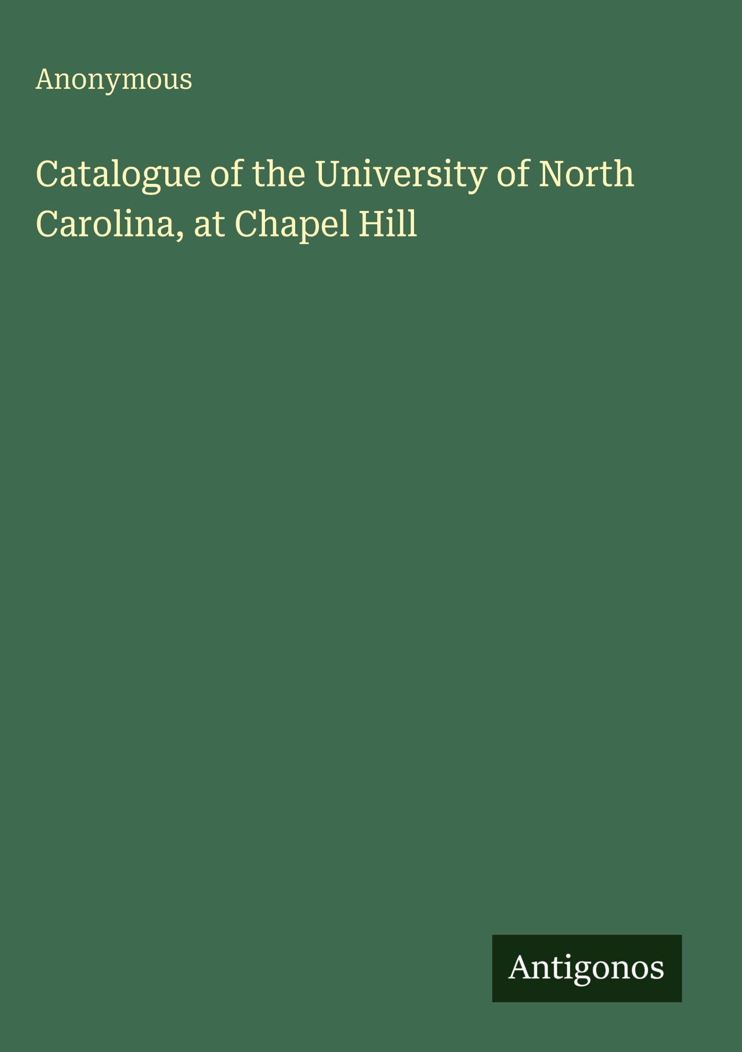 Anonymous: Catalogue of the University of North Carolina, at Chapel Hill, Gebunden