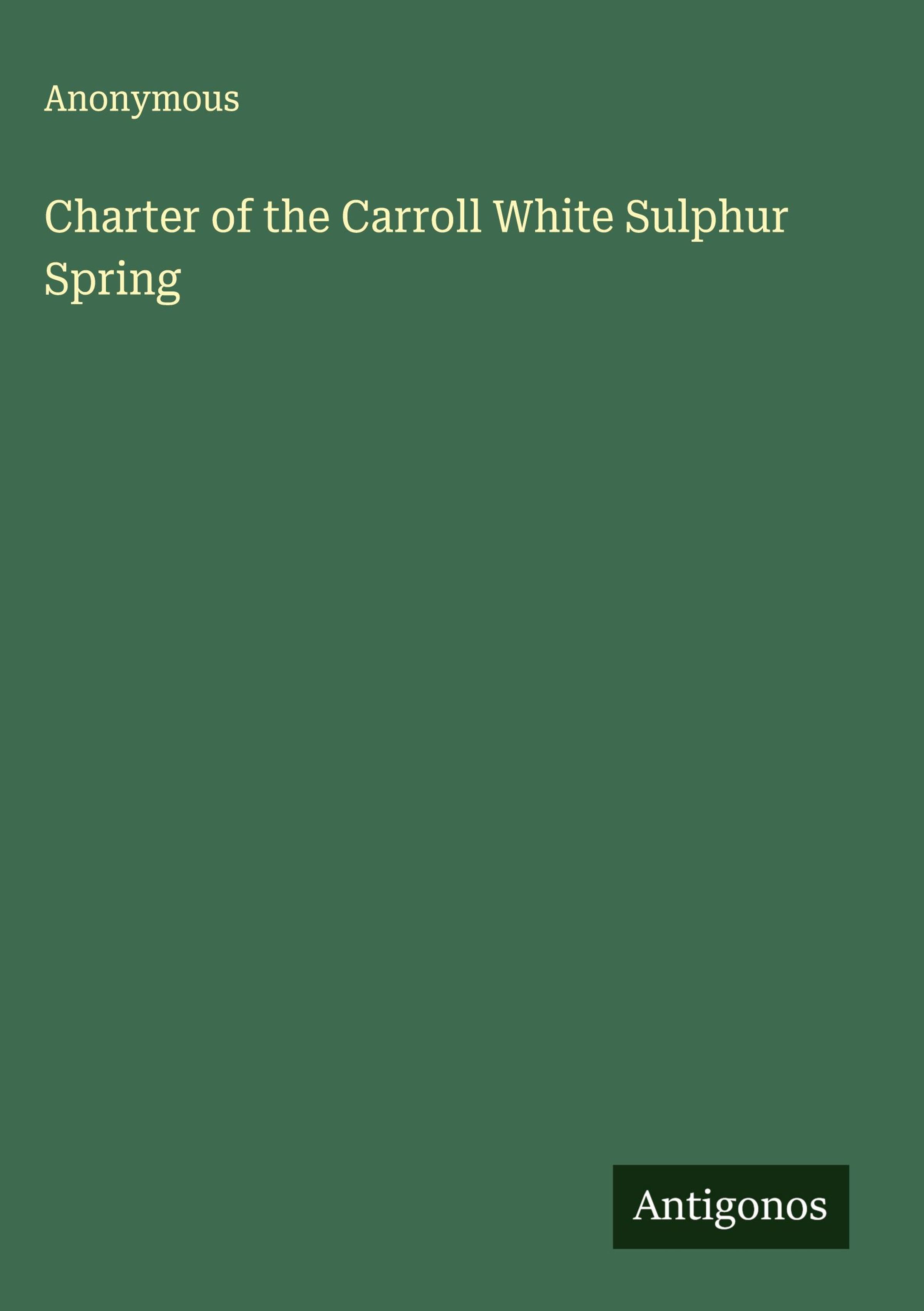 Anonymous: Charter of the Carroll White Sulphur Spring, Gebunden