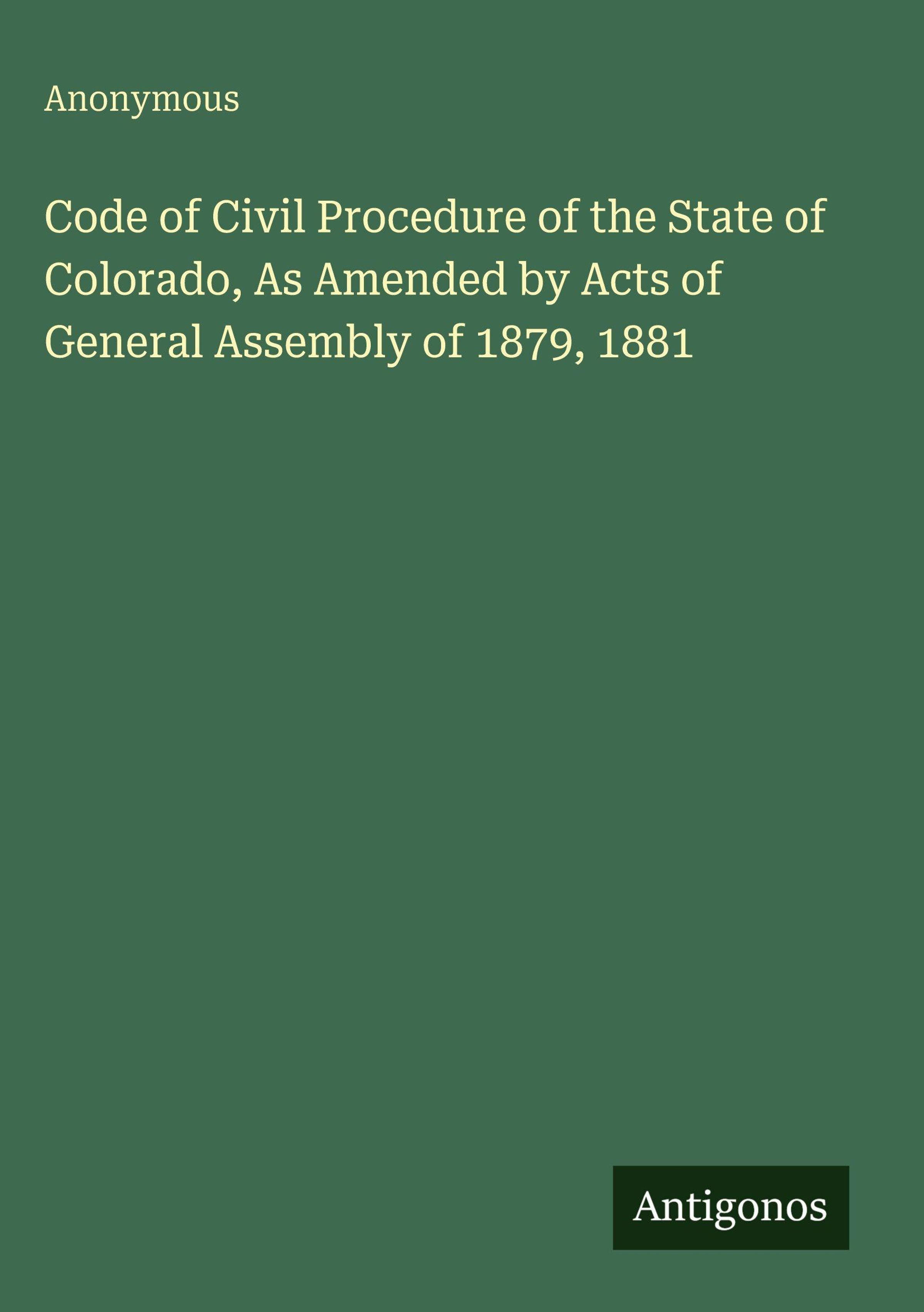 Anonymous: Code of Civil Procedure of the State of Colorado, As Amended by Acts of General Assembly of 1879, 1881, Gebunden