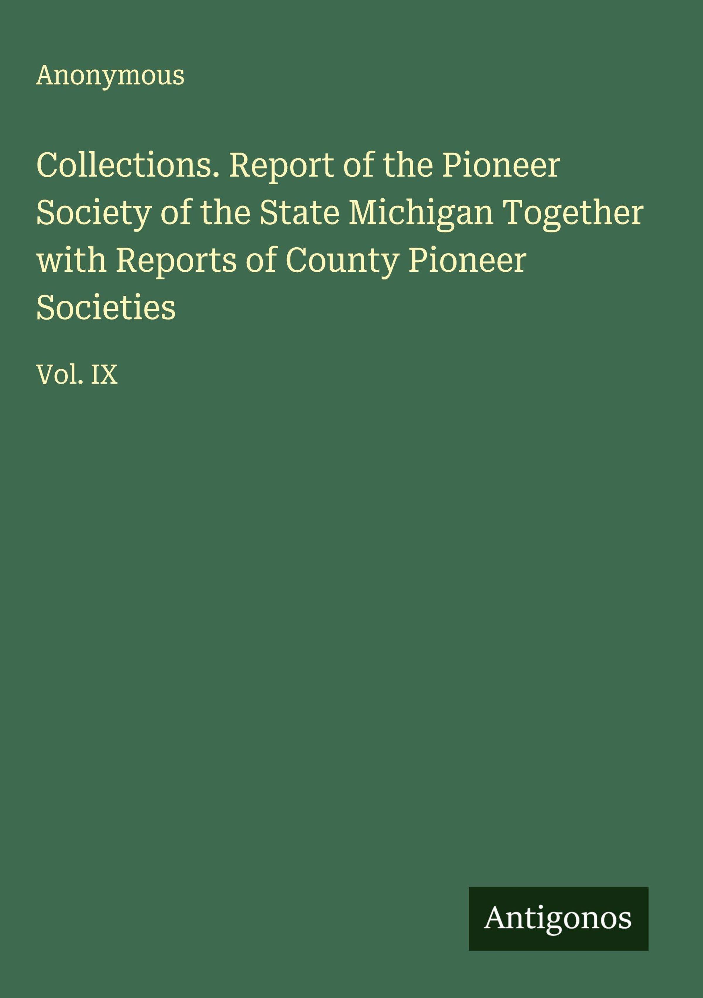 Collections. Report of the Pioneer Society of the State Michigan Together with Reports of County Pioneer Societies