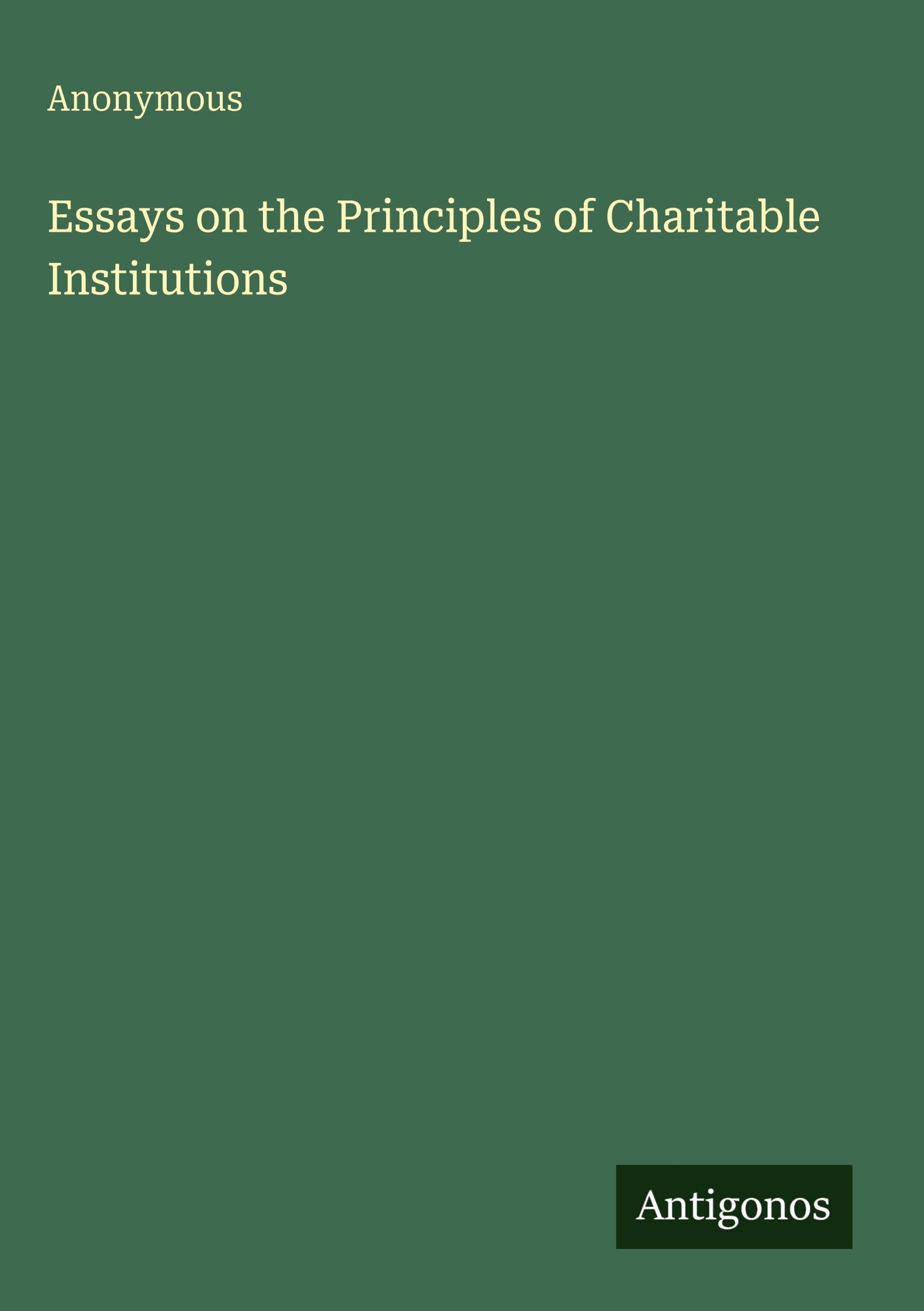 Anonymous: Essays on the Principles of Charitable Institutions, Gebunden