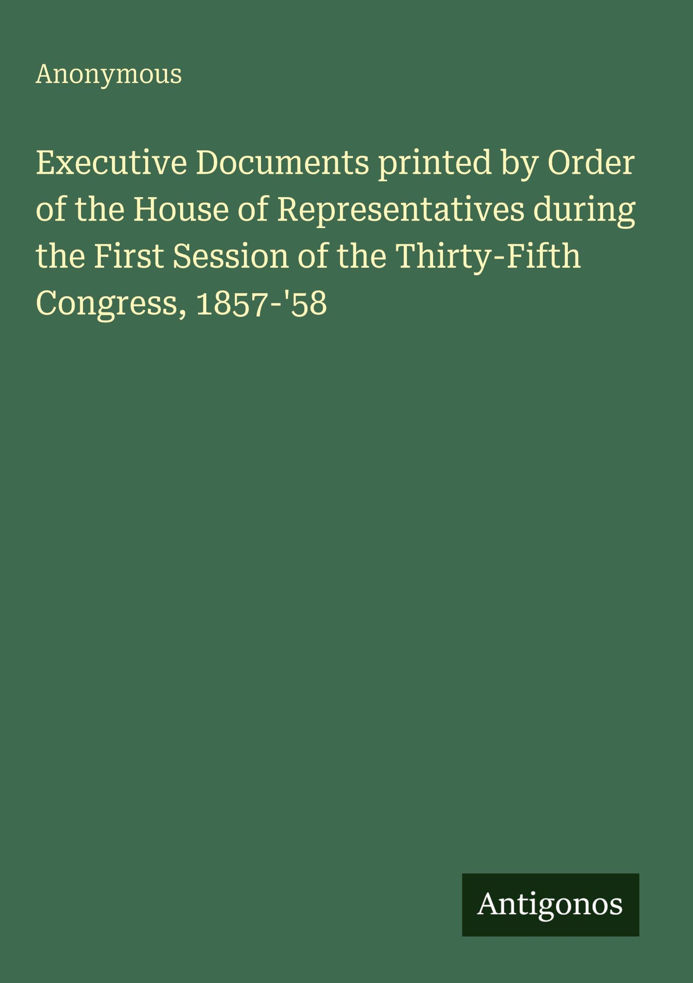 Executive Documents printed by Order of the House of Representatives during the First Session of the Thirty-Fifth Congress, 1857-'58