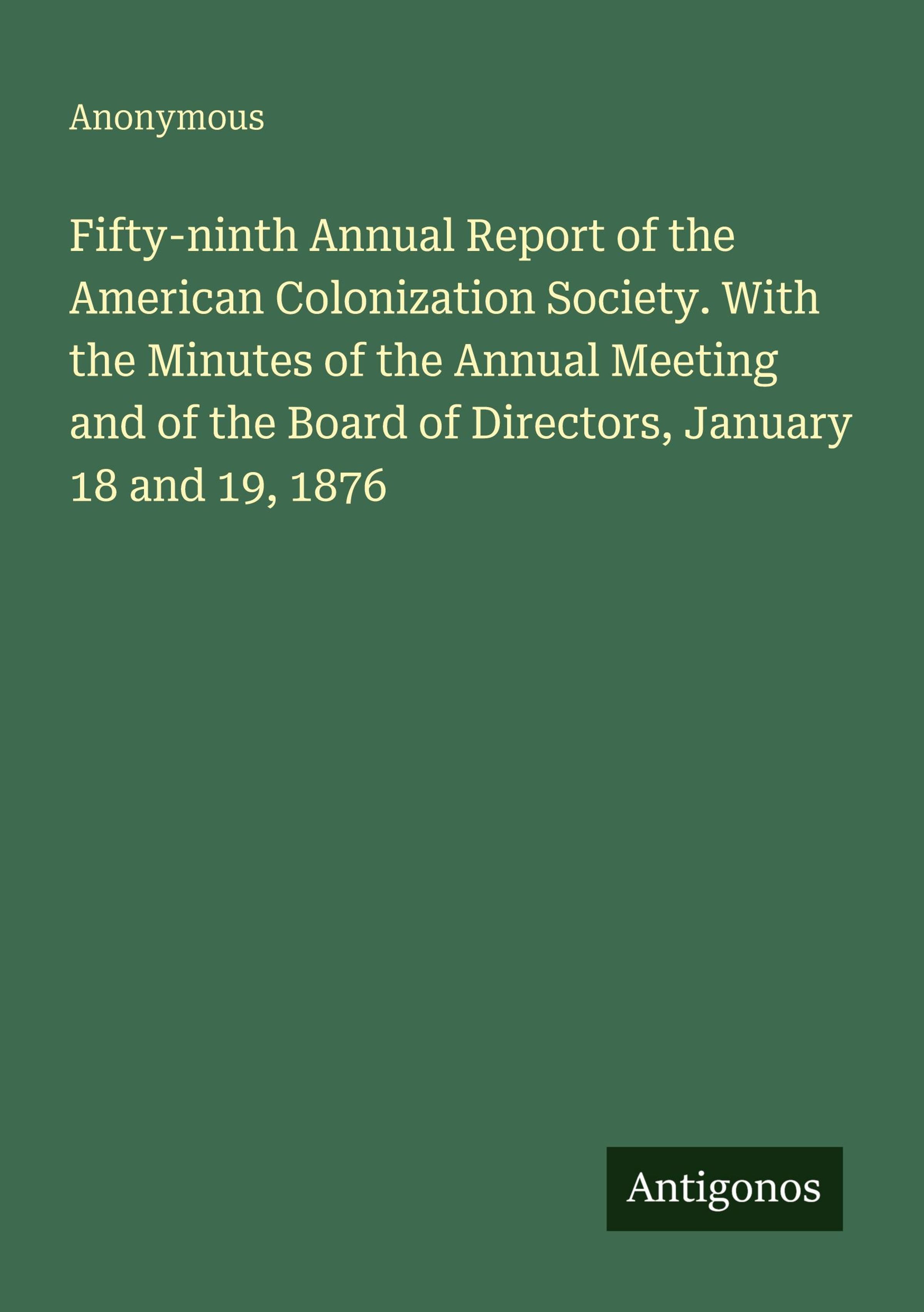 Fifty-ninth Annual Report of the American Colonization Society. With the Minutes of the Annual Meeting and of the Board of Directors, January 18 and 19, 1876