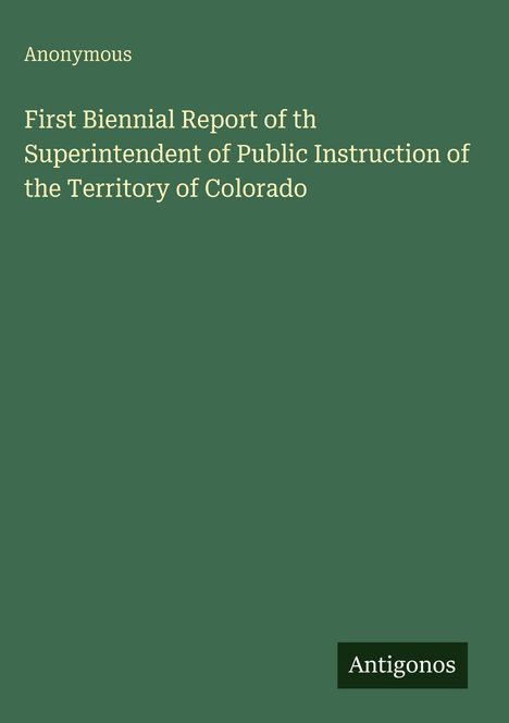 Anonymous: First Biennial Report of th Superintendent of Public Instruction of the Territory of Colorado, Gebunden