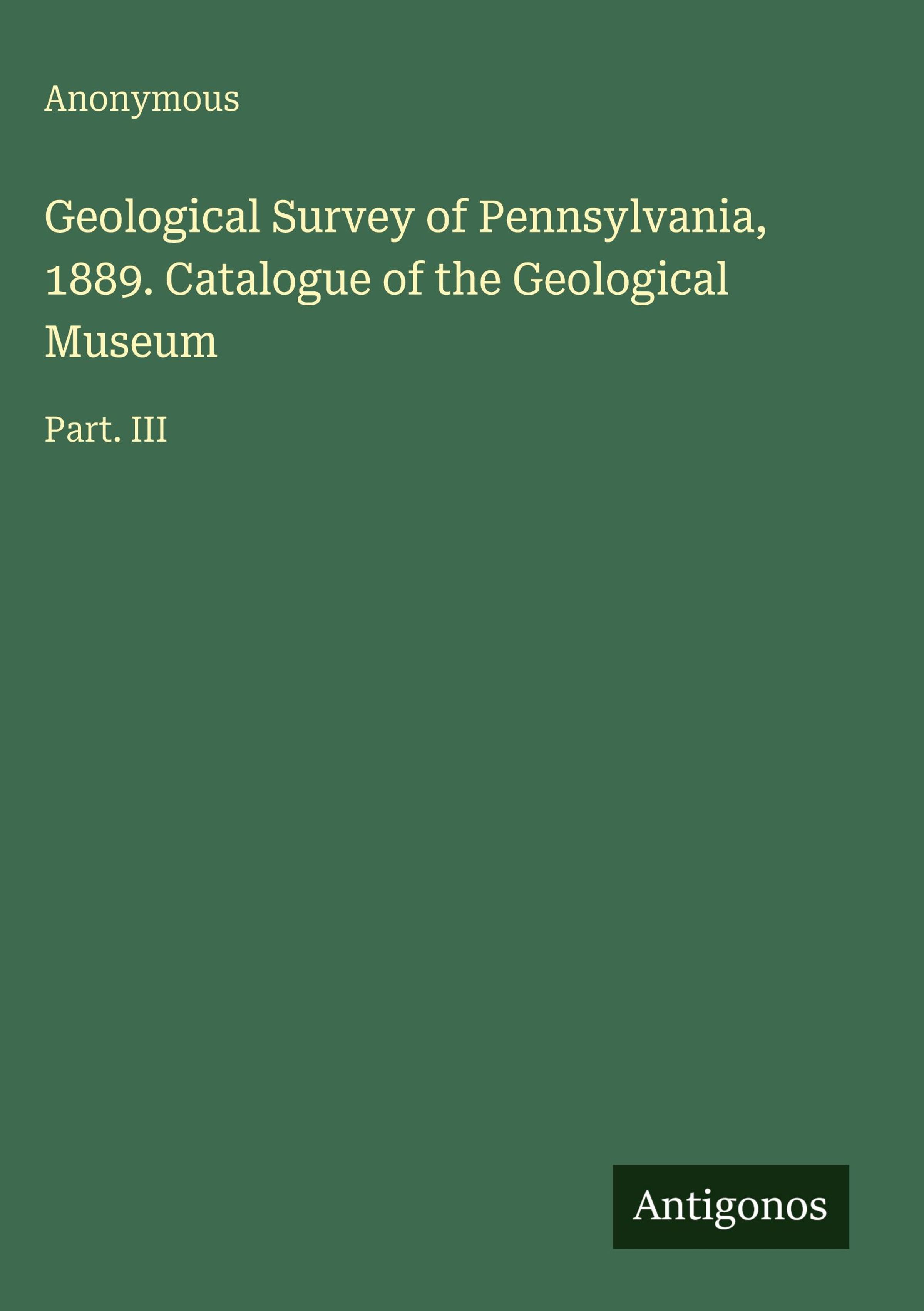 Geological Survey of Pennsylvania, 1889. Catalogue of the Geological Museum