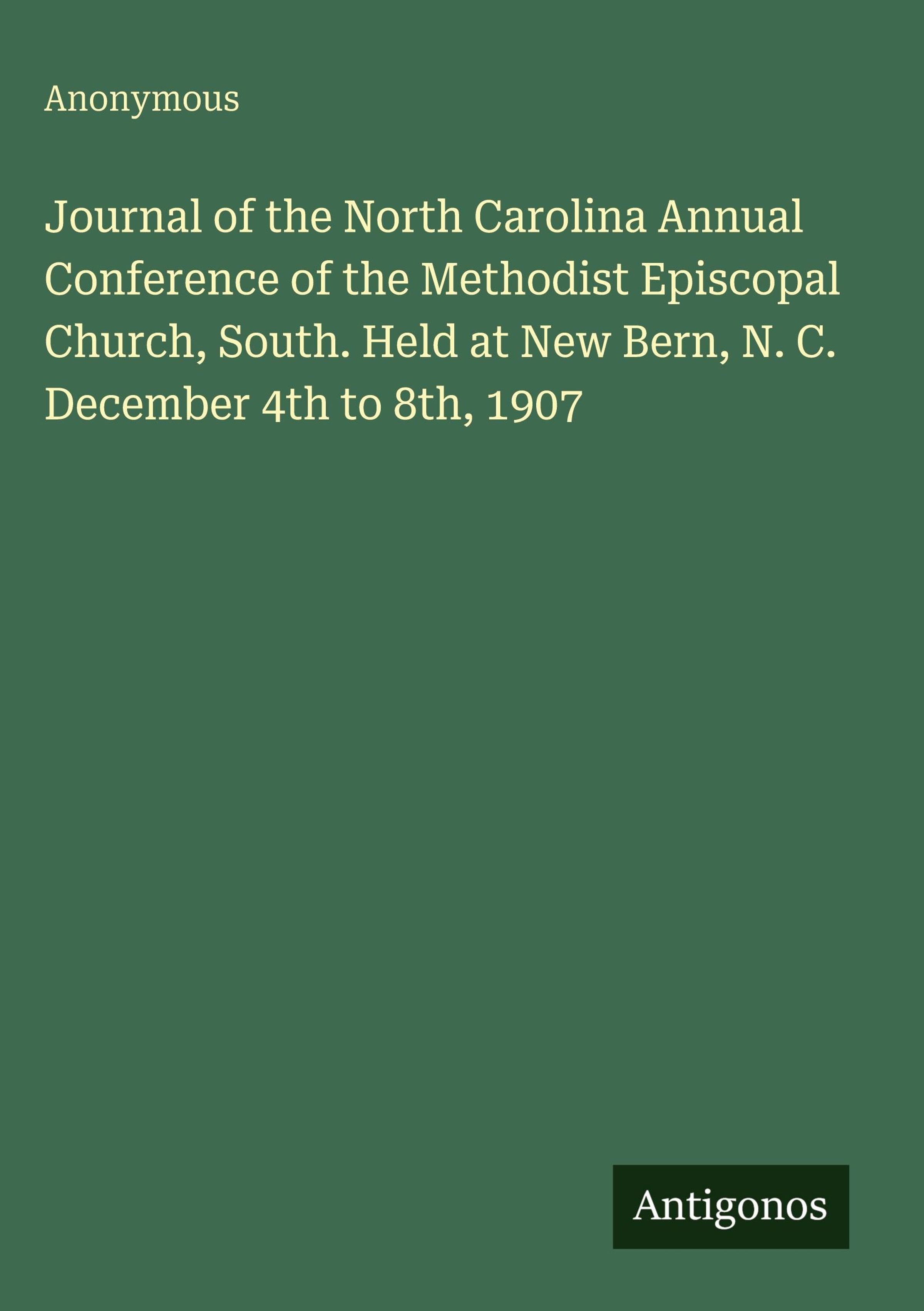 Journal of the North Carolina Annual Conference of the Methodist Episcopal Church, South. Held at New Bern, N. C. December 4th to 8th, 1907