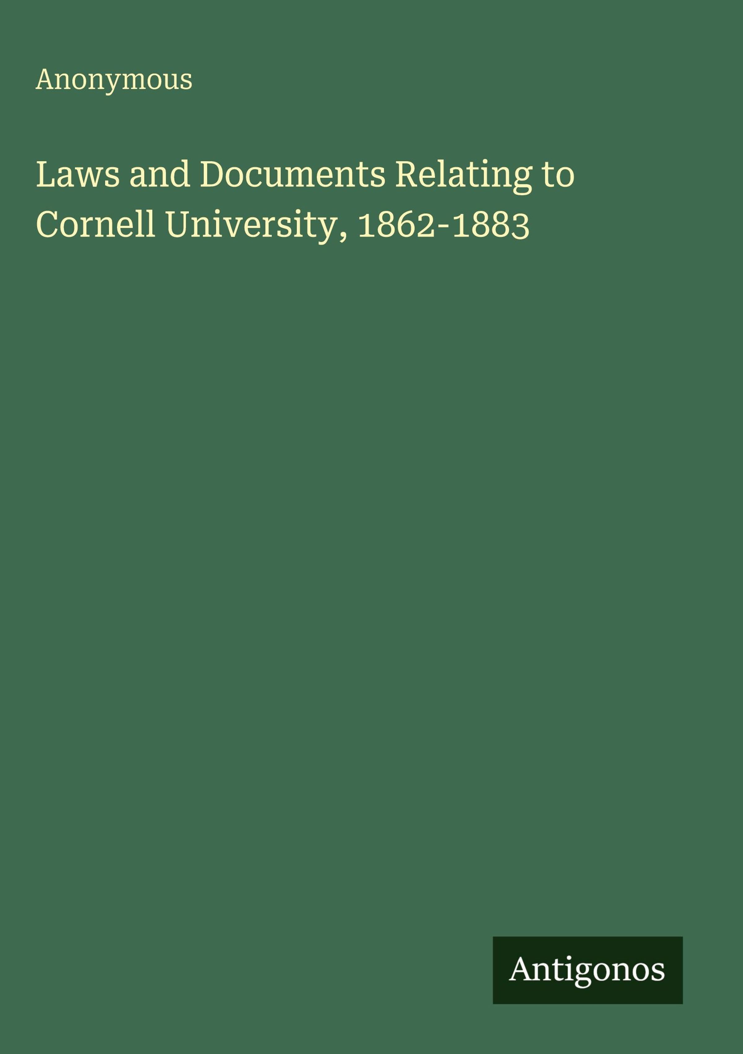 Anonymous: Laws and Documents Relating to Cornell University, 1862-1883, Gebunden
