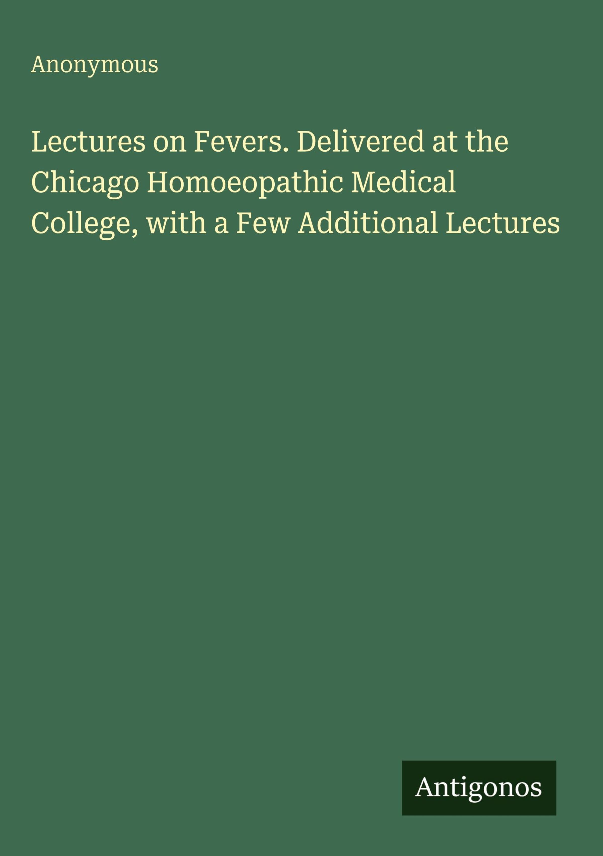 Anonymous: Lectures on Fevers. Delivered at the Chicago Homoeopathic Medical College, with a Few Additional..., Gebunden