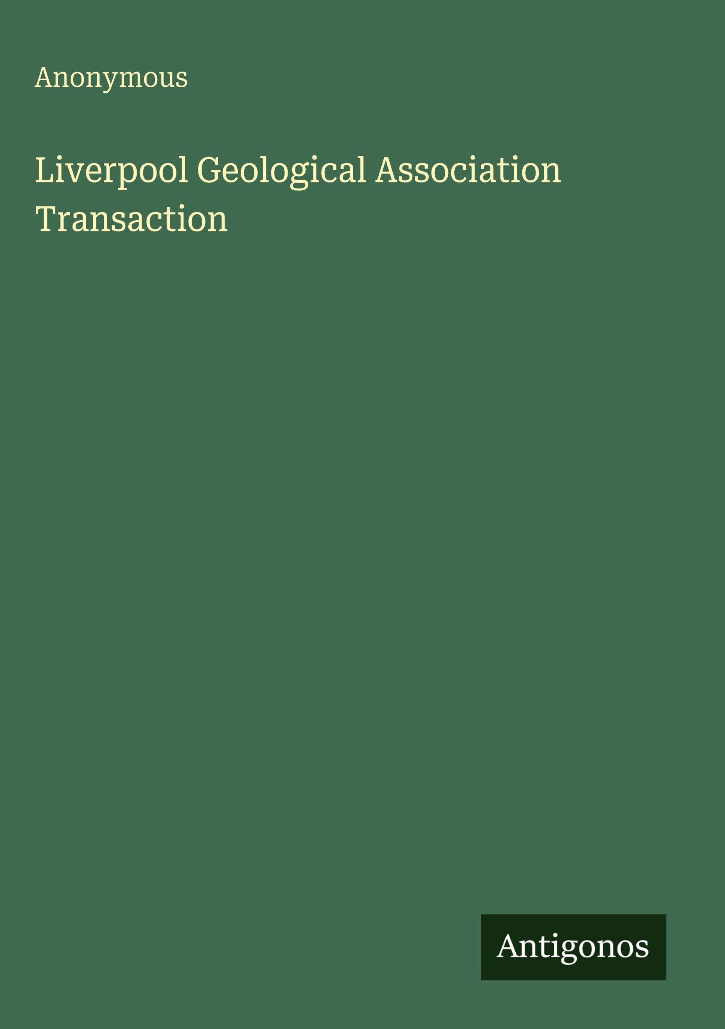Anonymous: Liverpool Geological Association Transaction, Gebunden