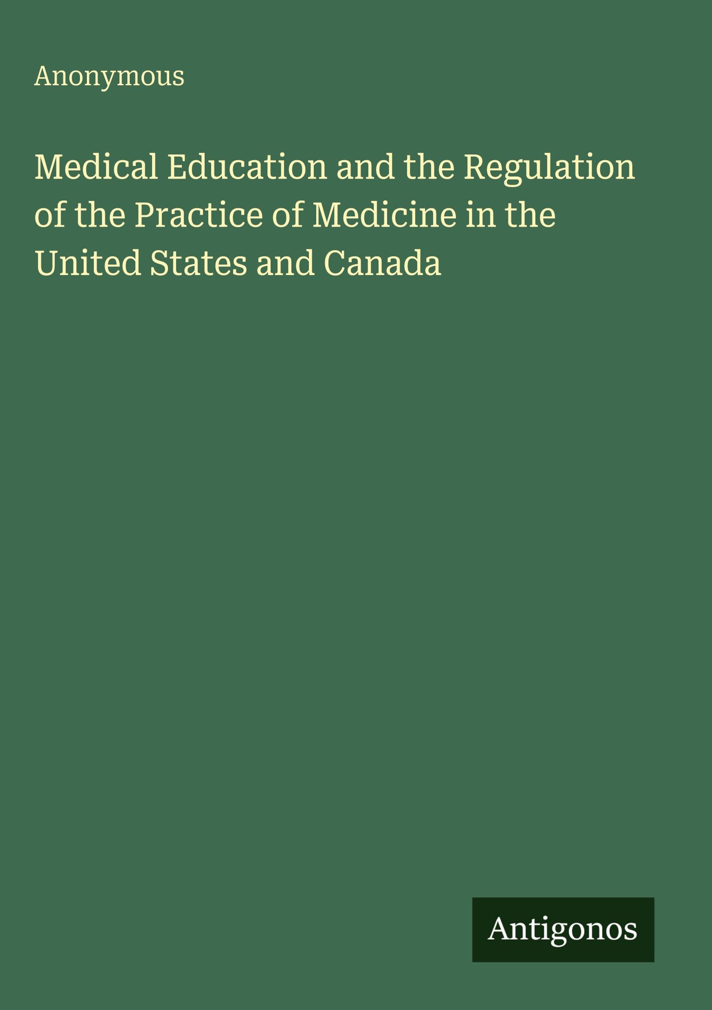 Anonymous: Medical Education and the Regulation of the Practice of Medicine in the United States and Canada, Gebunden