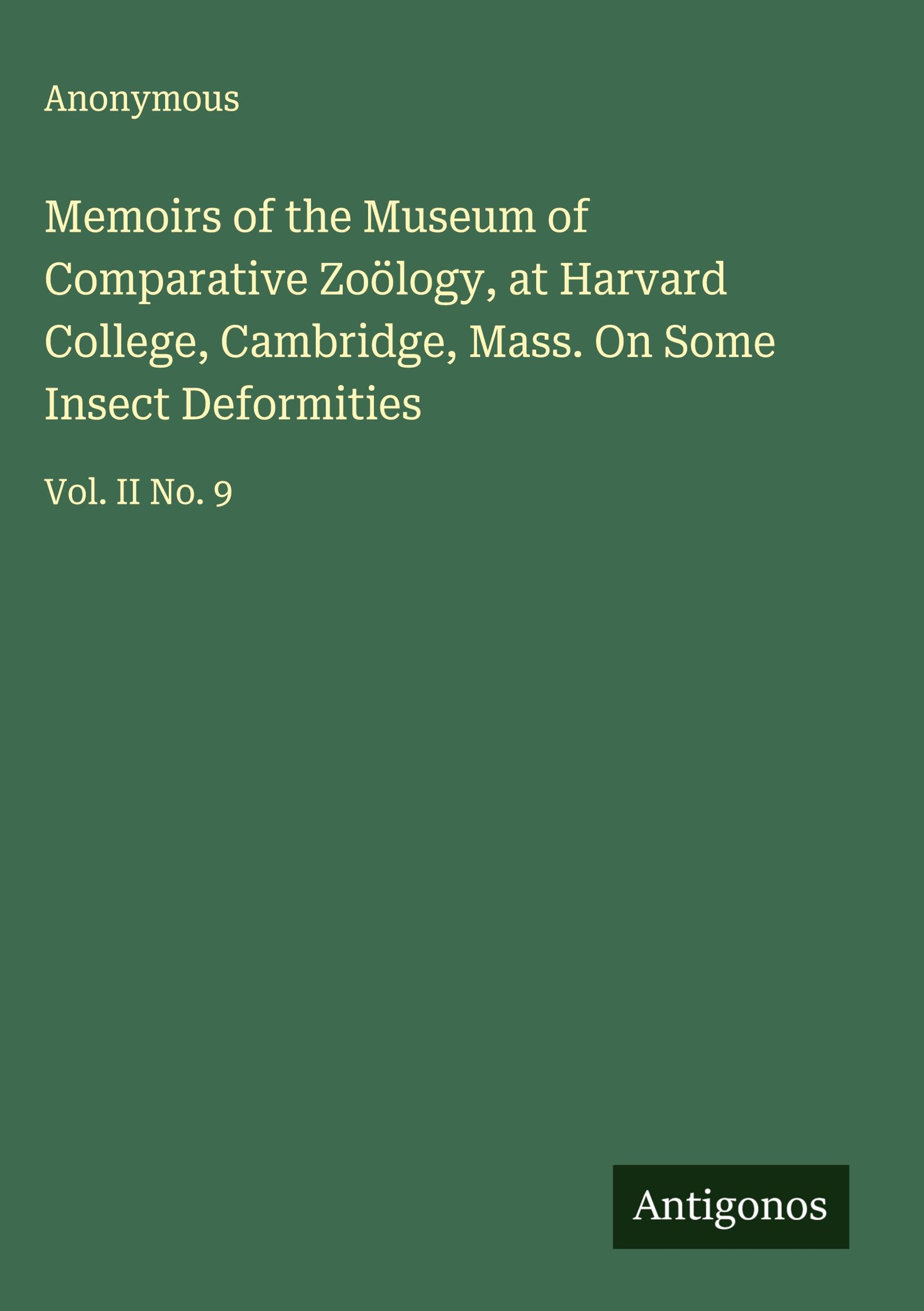 Memoirs of the Museum of Comparative Zoölogy, at Harvard College, Cambridge, Mass. On Some Insect Deformities