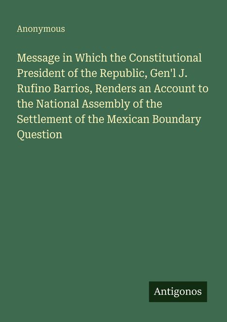 Message in Which the Constitutional President of the Republic, Gen'l J. Rufino Barrios, Renders an Account to the National Assembly of the Settlement of the Mexican Boundary Question