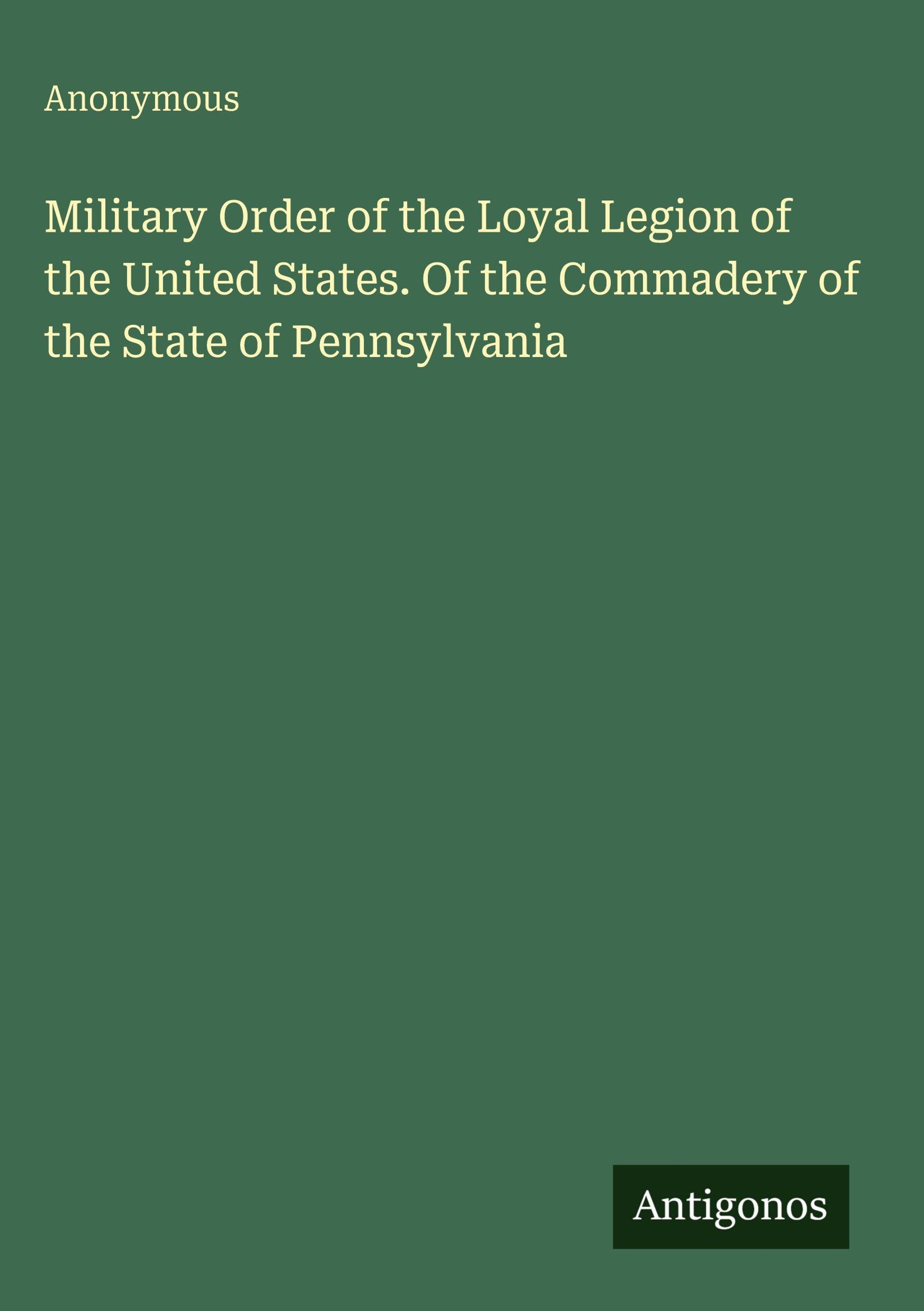 Anonymous: Military Order of the Loyal Legion of the United States. Of the Commadery of the State of Pennsylvania, Gebunden