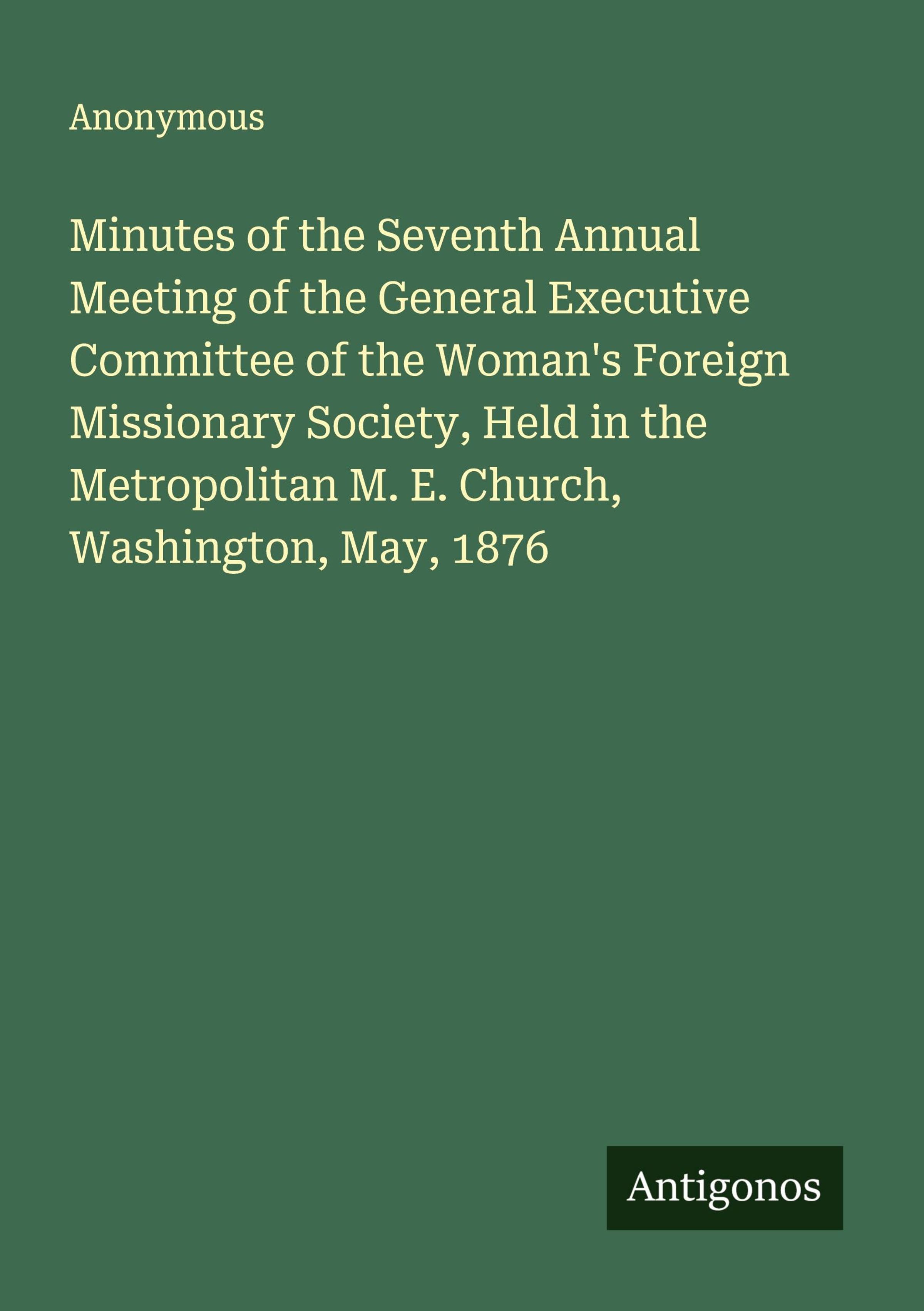 Minutes of the Seventh Annual Meeting of the General Executive Committee of the Woman's Foreign Missionary Society, Held in the Metropolitan M. E. Church, Washington, May, 1876