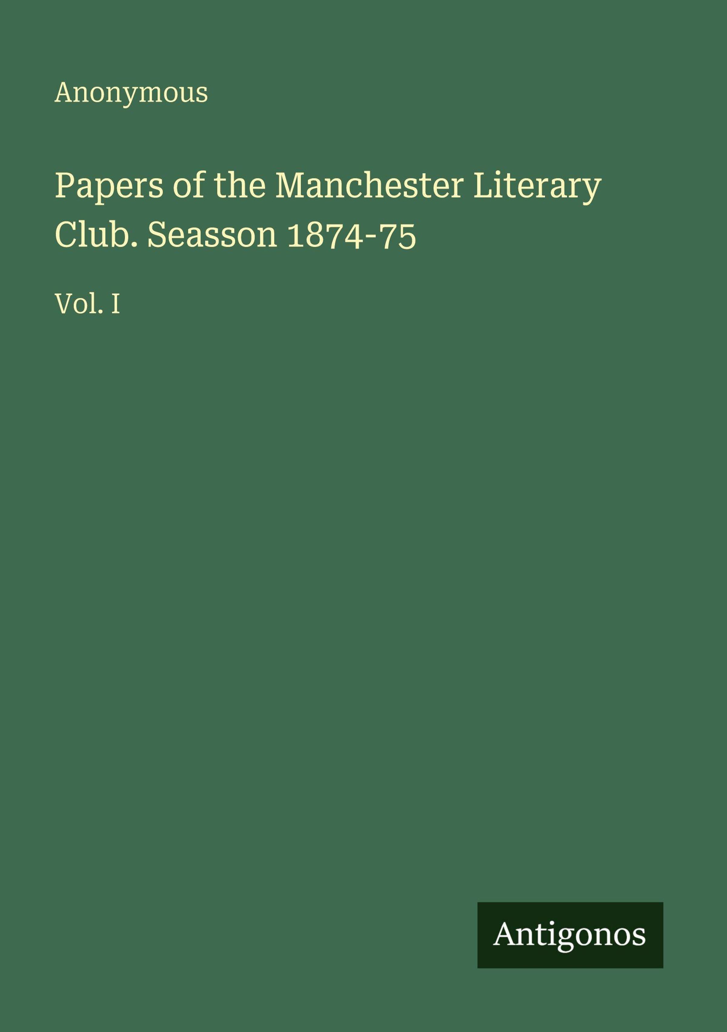 Papers of the Manchester Literary Club. Seasson 1874-75