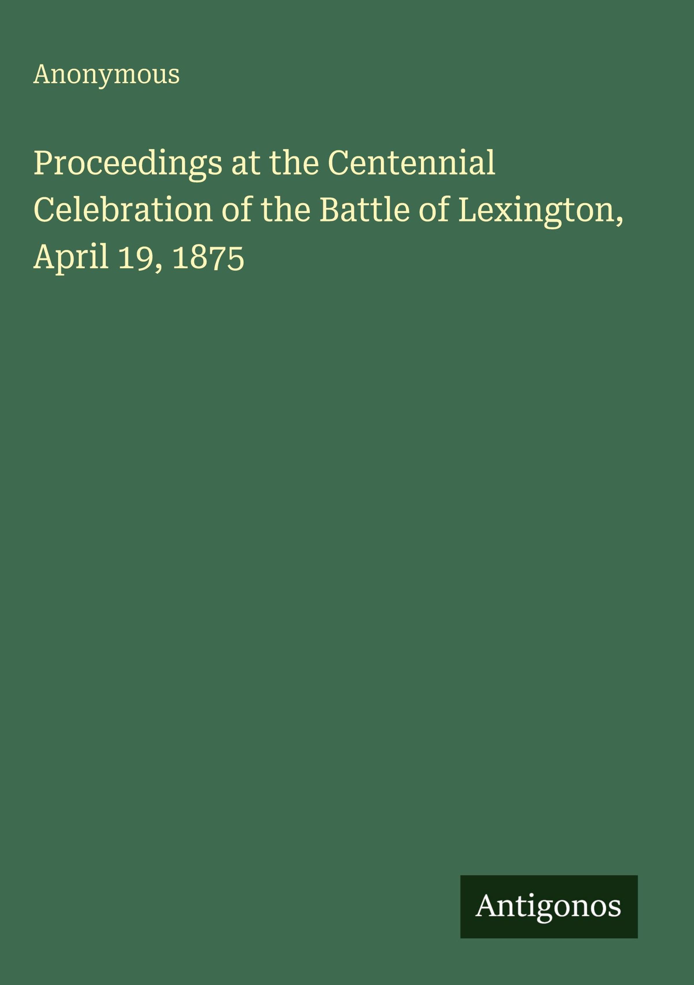 Anonymous: Proceedings at the Centennial Celebration of the Battle of Lexington, April 19, 1875, Gebunden