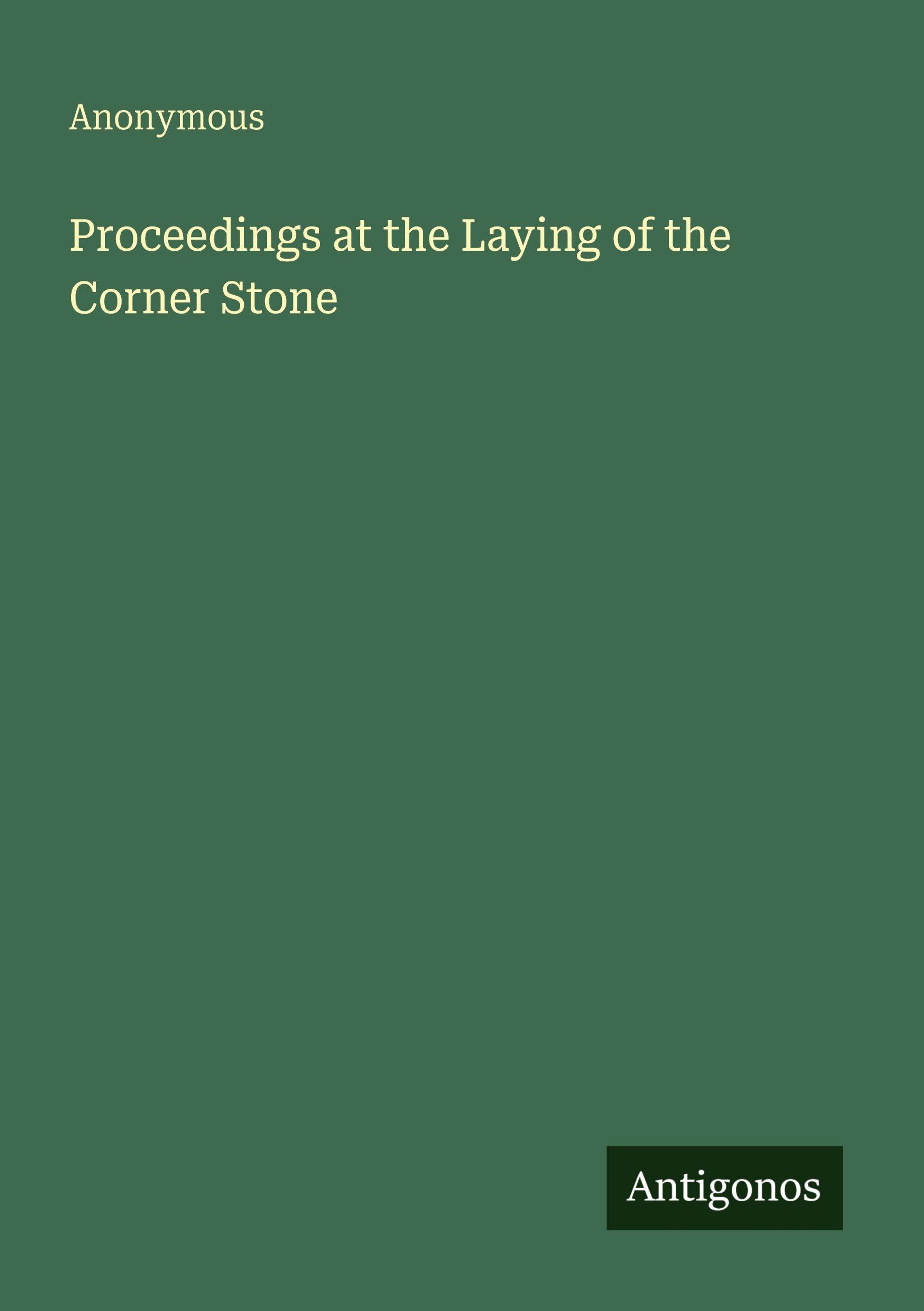 Anonymous: Proceedings at the Laying of the Corner Stone, Kartoniert / Broschiert