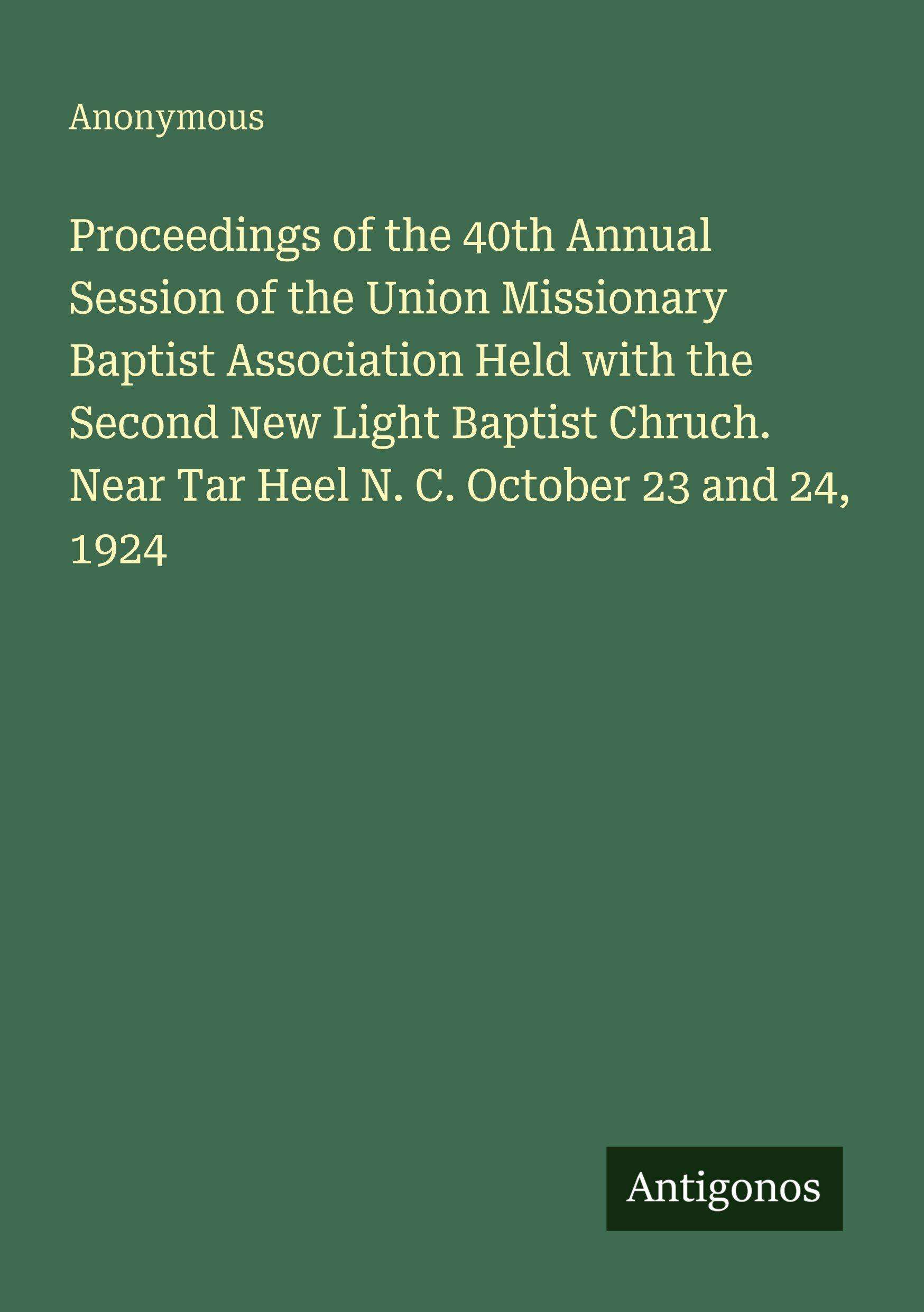 Proceedings of the 40th Annual Session of the Union Missionary Baptist Association Held with the Second New Light Baptist Chruch. Near Tar Heel N. C. October 23 and 24, 1924