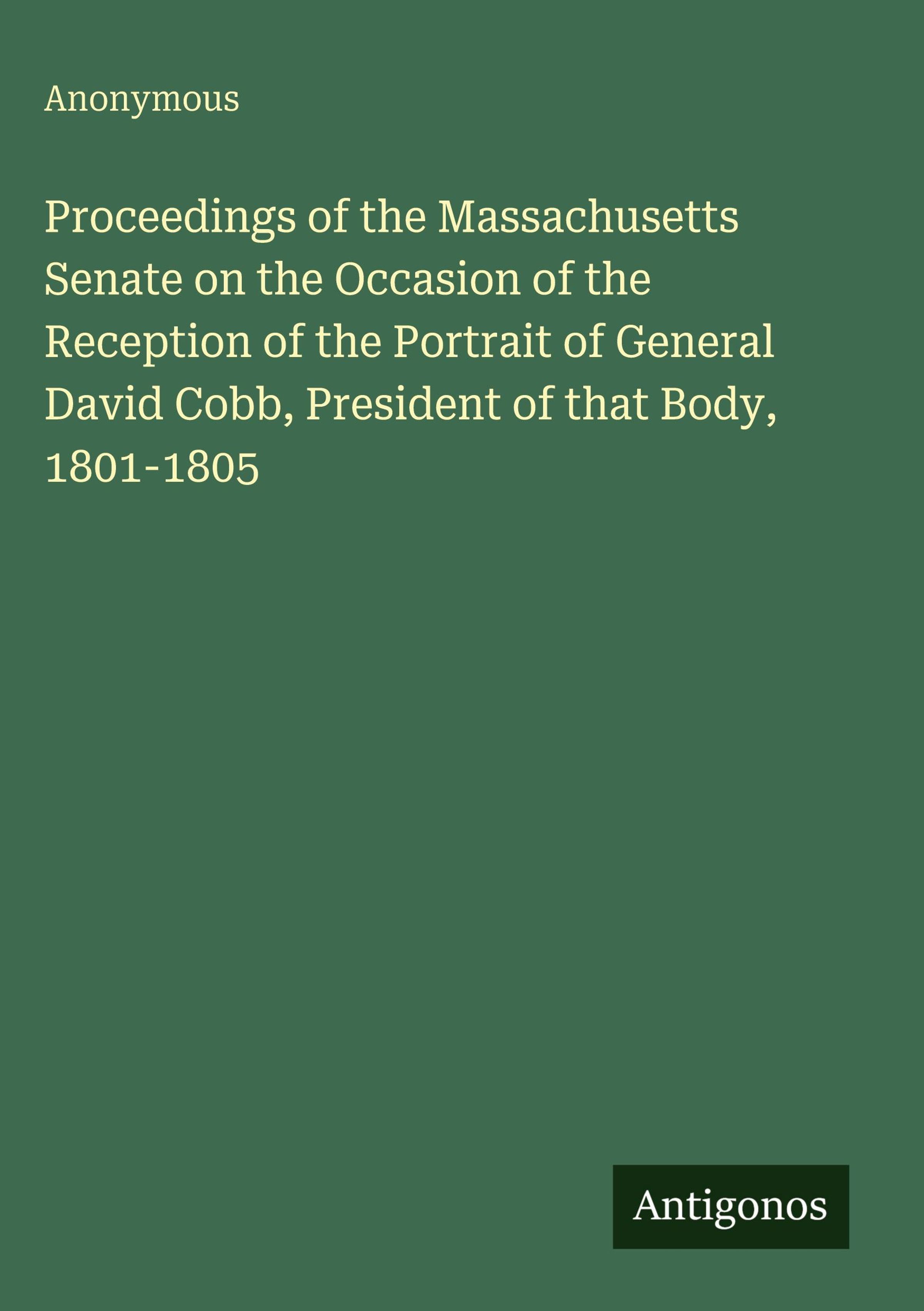 Proceedings of the Massachusetts Senate on the Occasion of the Reception of the Portrait of General David Cobb, President of that Body, 1801-1805