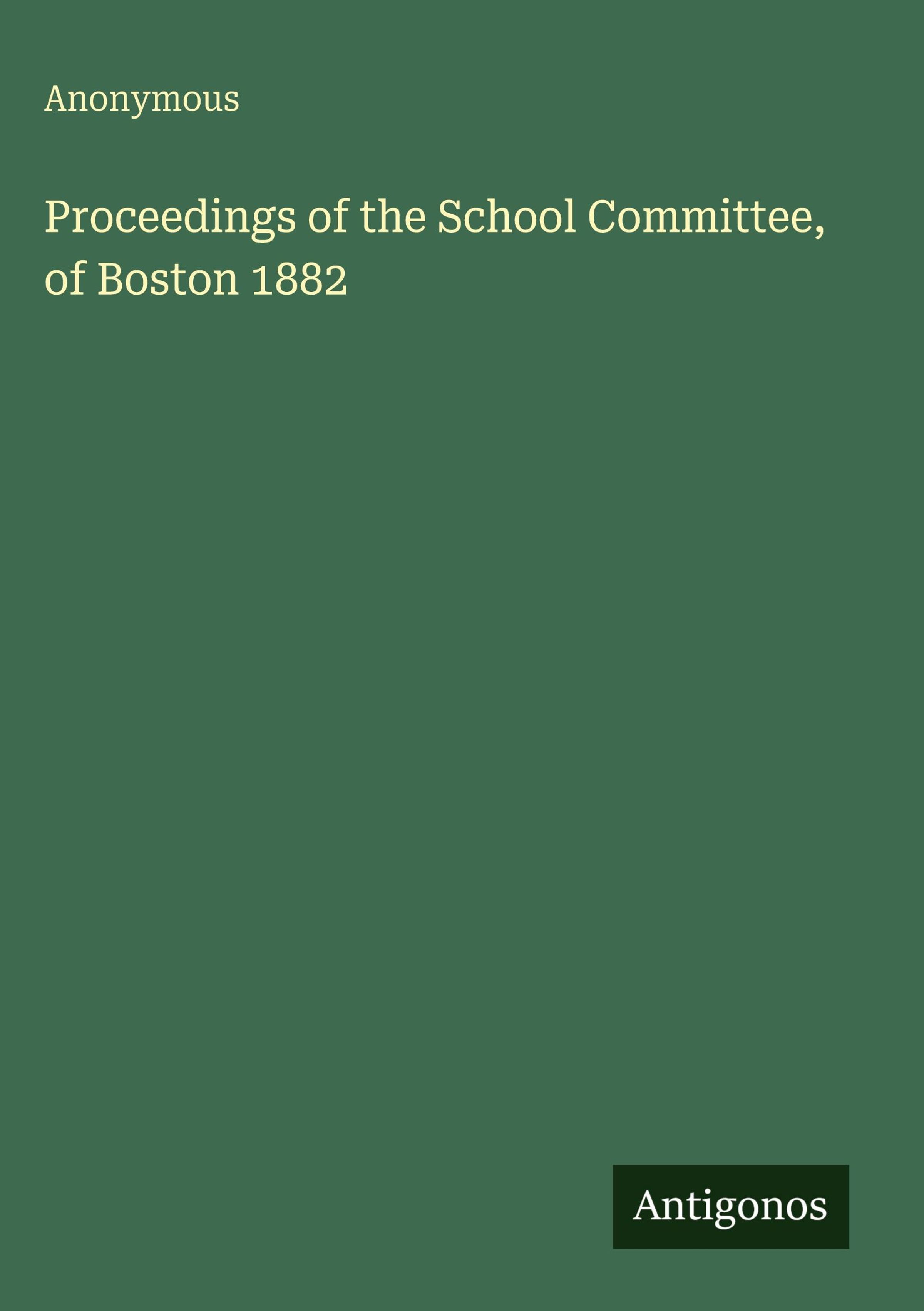 Anonymous: Proceedings of the School Committee, of Boston 1882, Gebunden