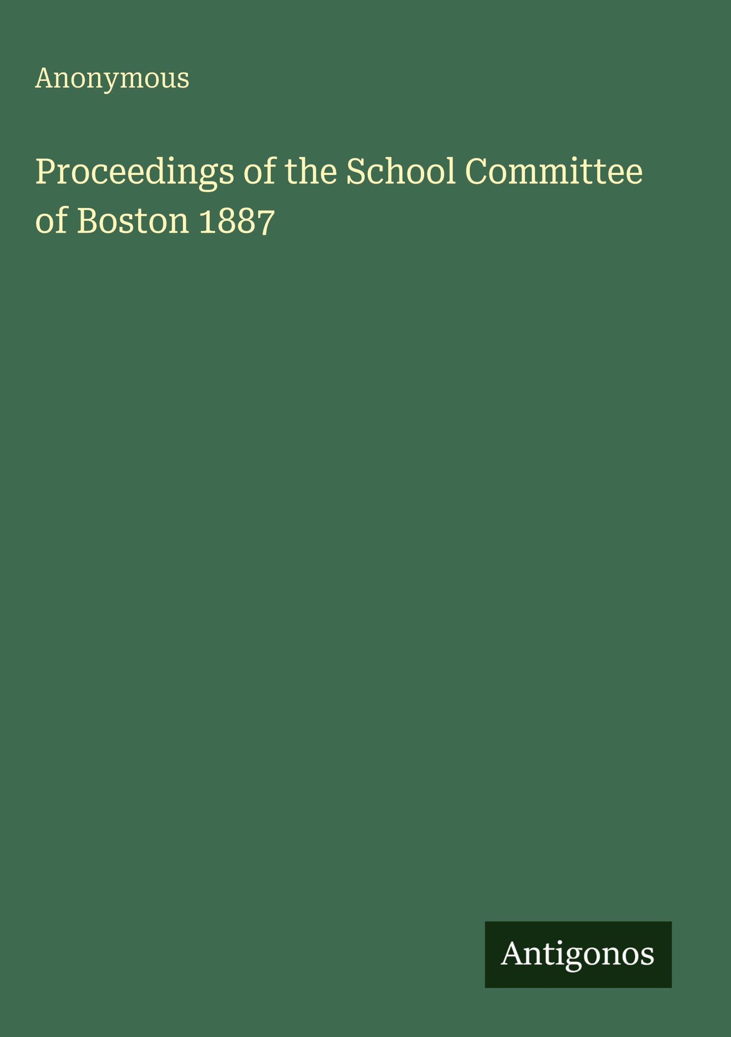 Anonymous: Proceedings of the School Committee of Boston 1887, Gebunden