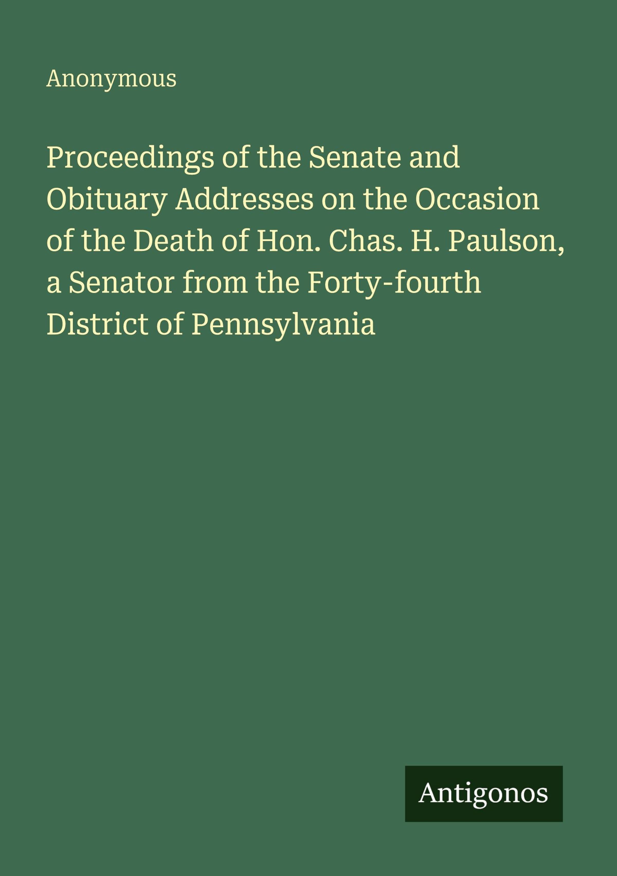 Proceedings of the Senate and Obituary Addresses on the Occasion of the Death of Hon. Chas. H. Paulson, a Senator from the Forty-fourth District of Pennsylvania