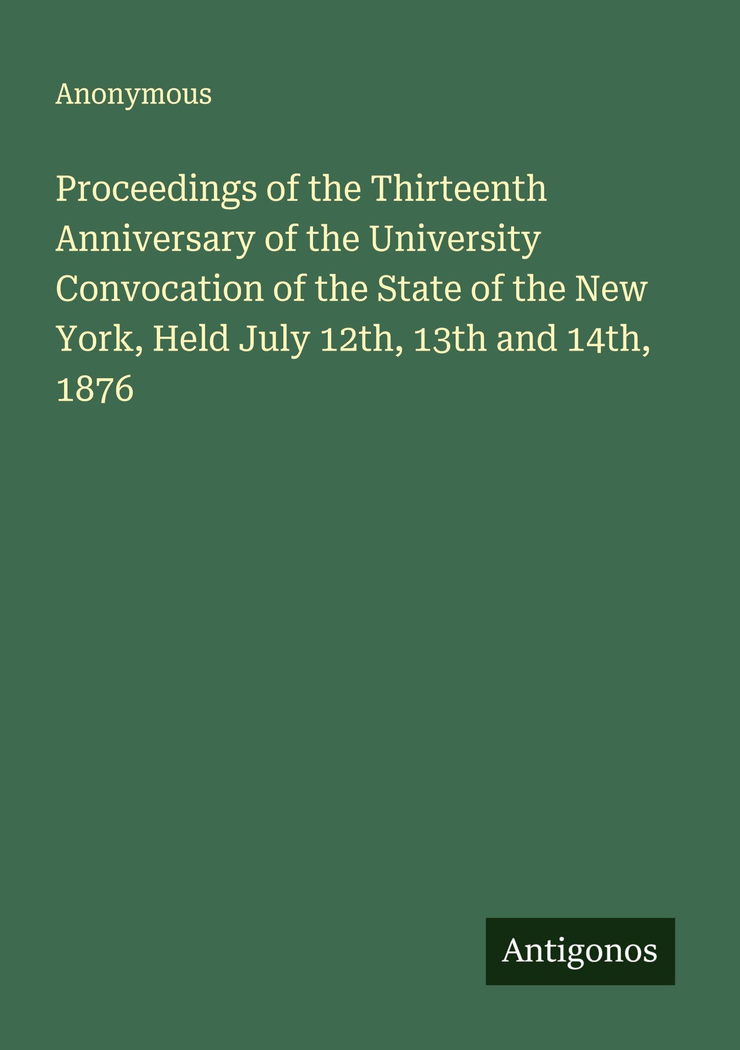 Anonymous: Proceedings of the Thirteenth Anniversary of the University Convocation of the State of the New York,..., Kartoniert / Broschiert