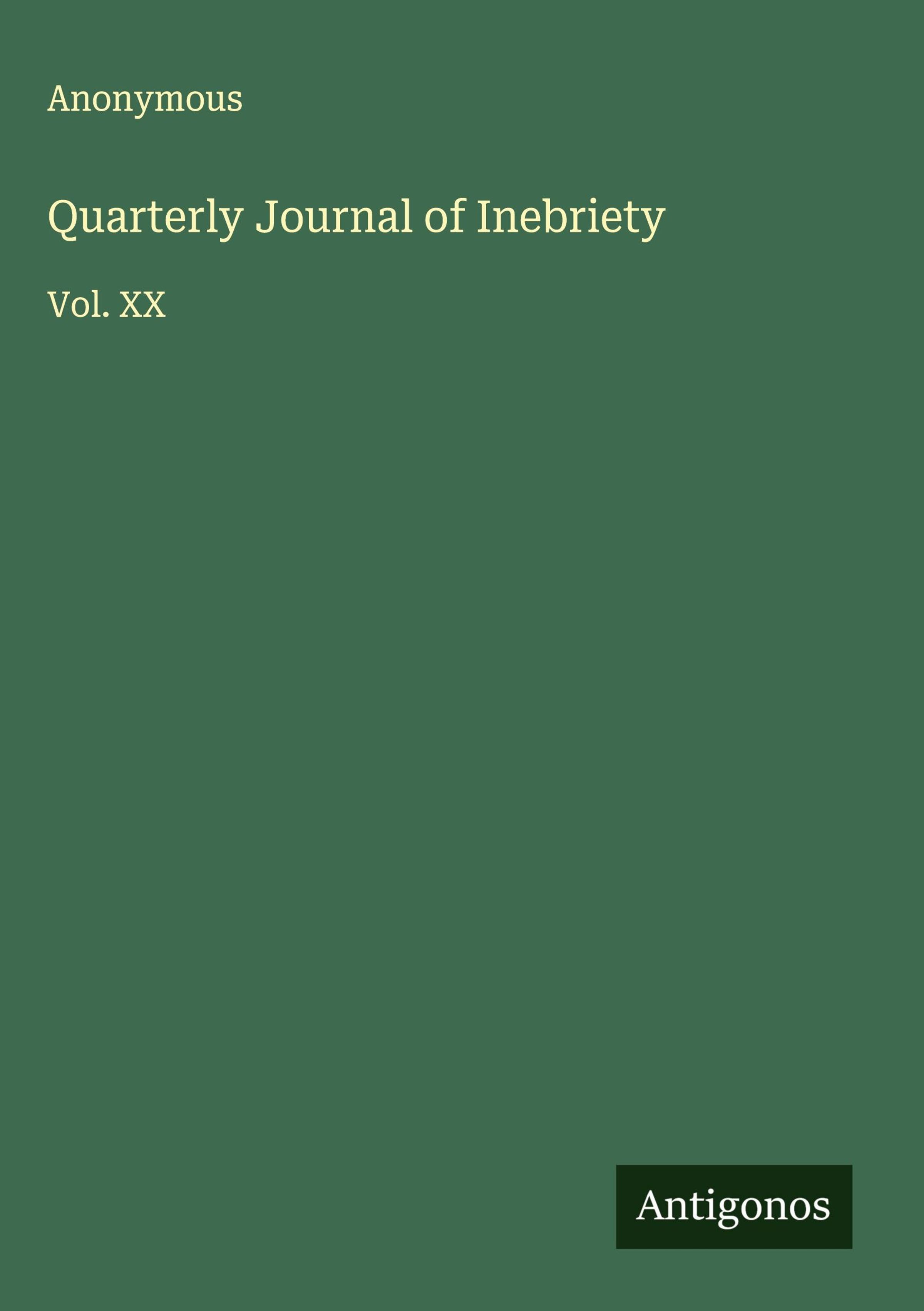 Anonymous: Quarterly Journal of Inebriety, Gebunden