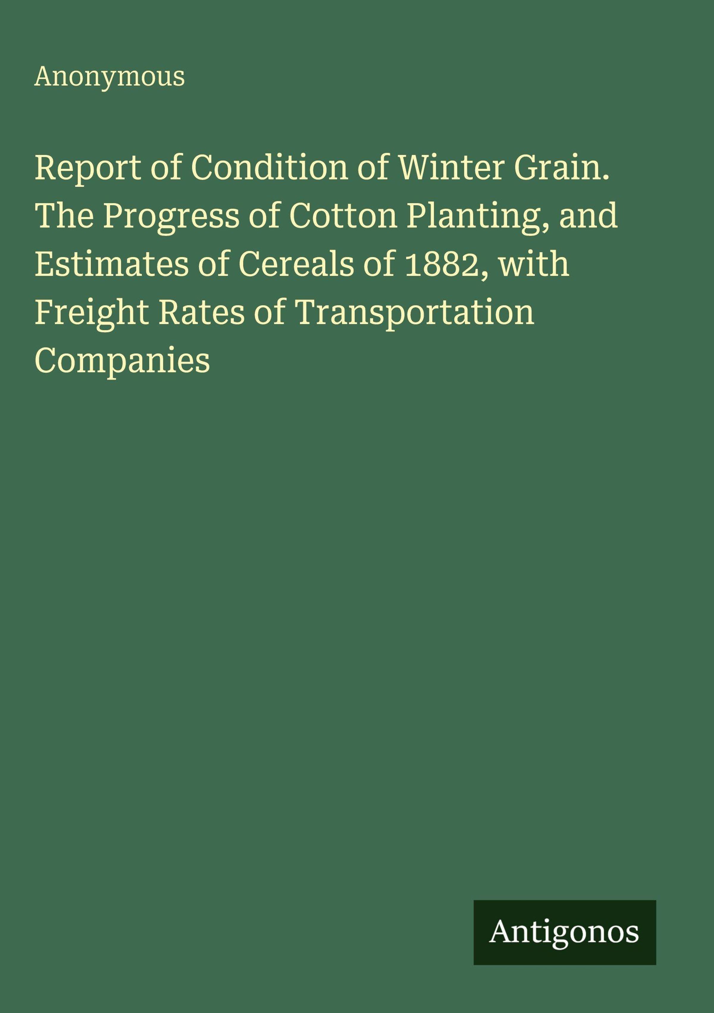 Report of Condition of Winter Grain. The Progress of Cotton Planting, and Estimates of Cereals of 1882, with Freight Rates of Transportation Companies