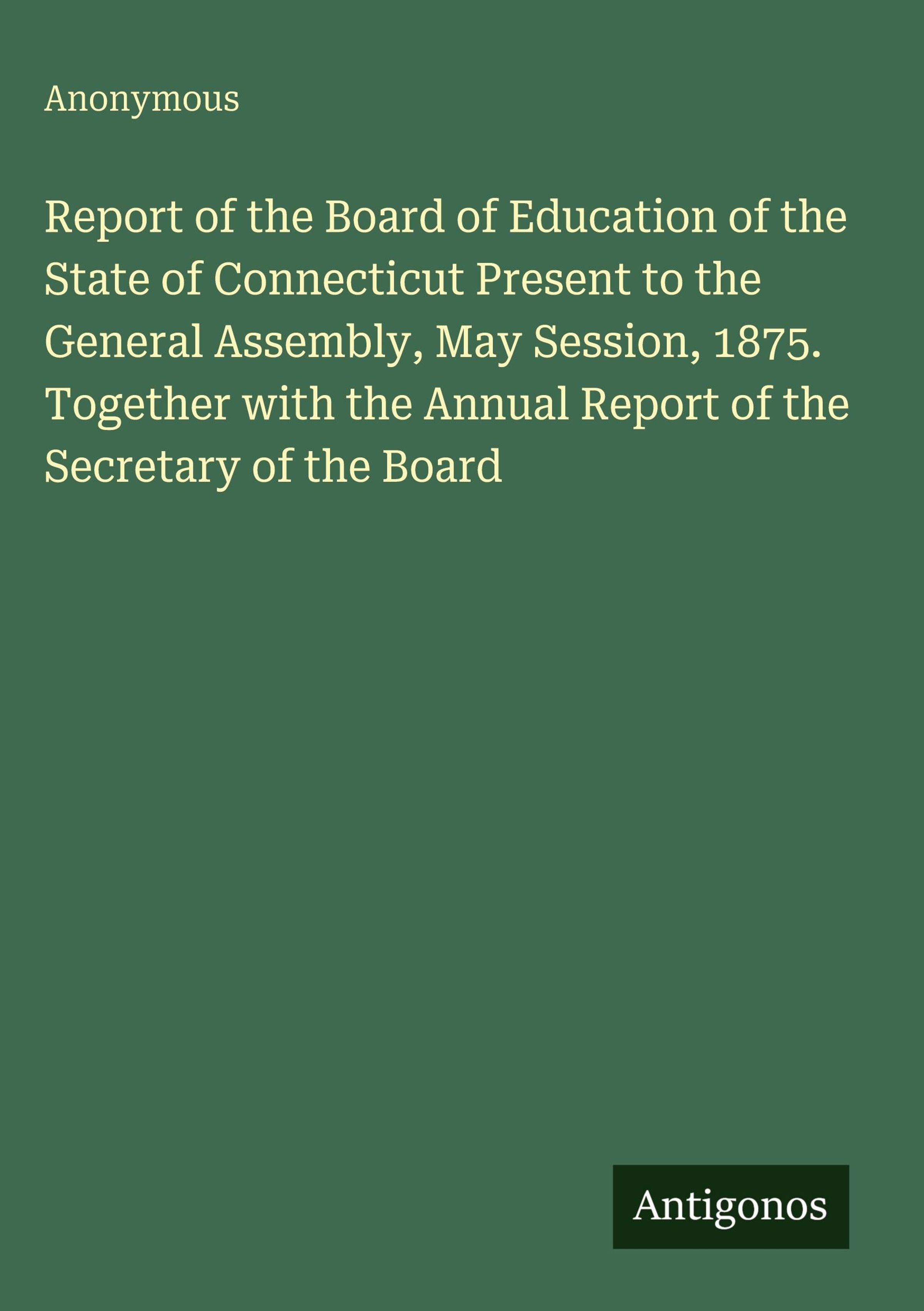 Report of the Board of Education of the State of Connecticut Present to the General Assembly, May Session, 1875. Together with the Annual Report of the Secretary of the Board