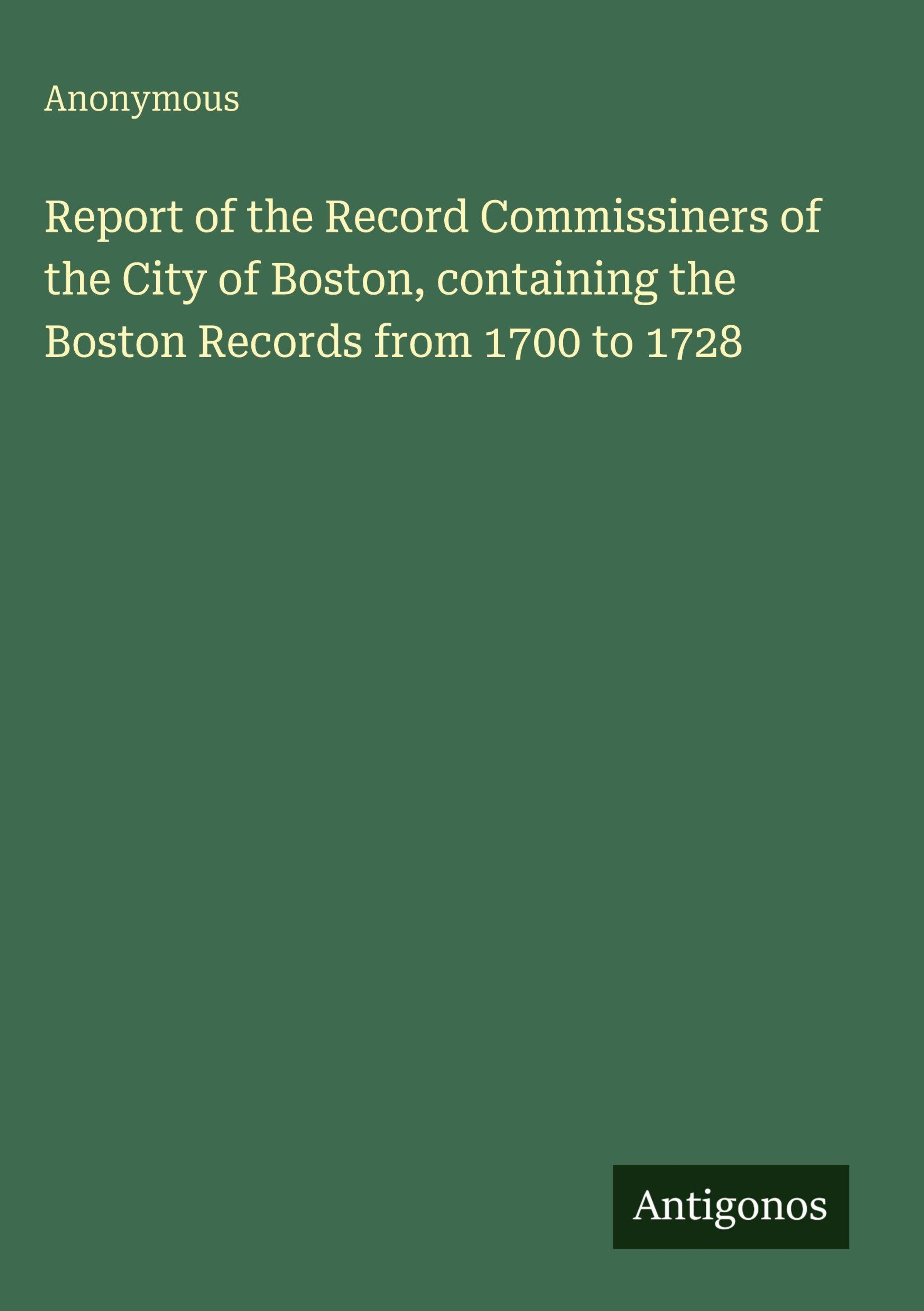 Anonymous: Report of the Record Commissiners of the City of Boston, containing the Boston Records from 1700 to 1728, Gebunden