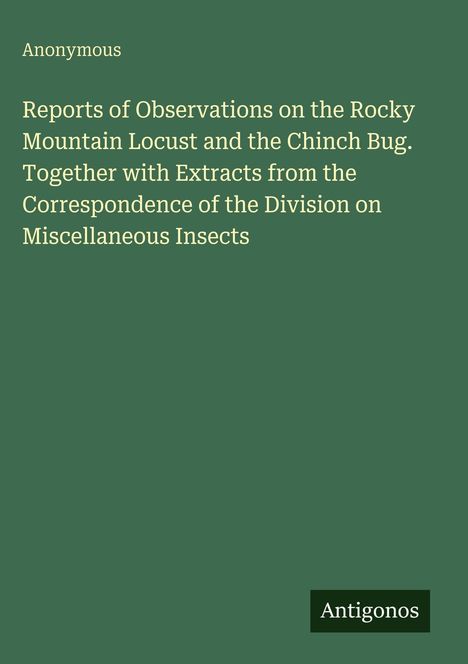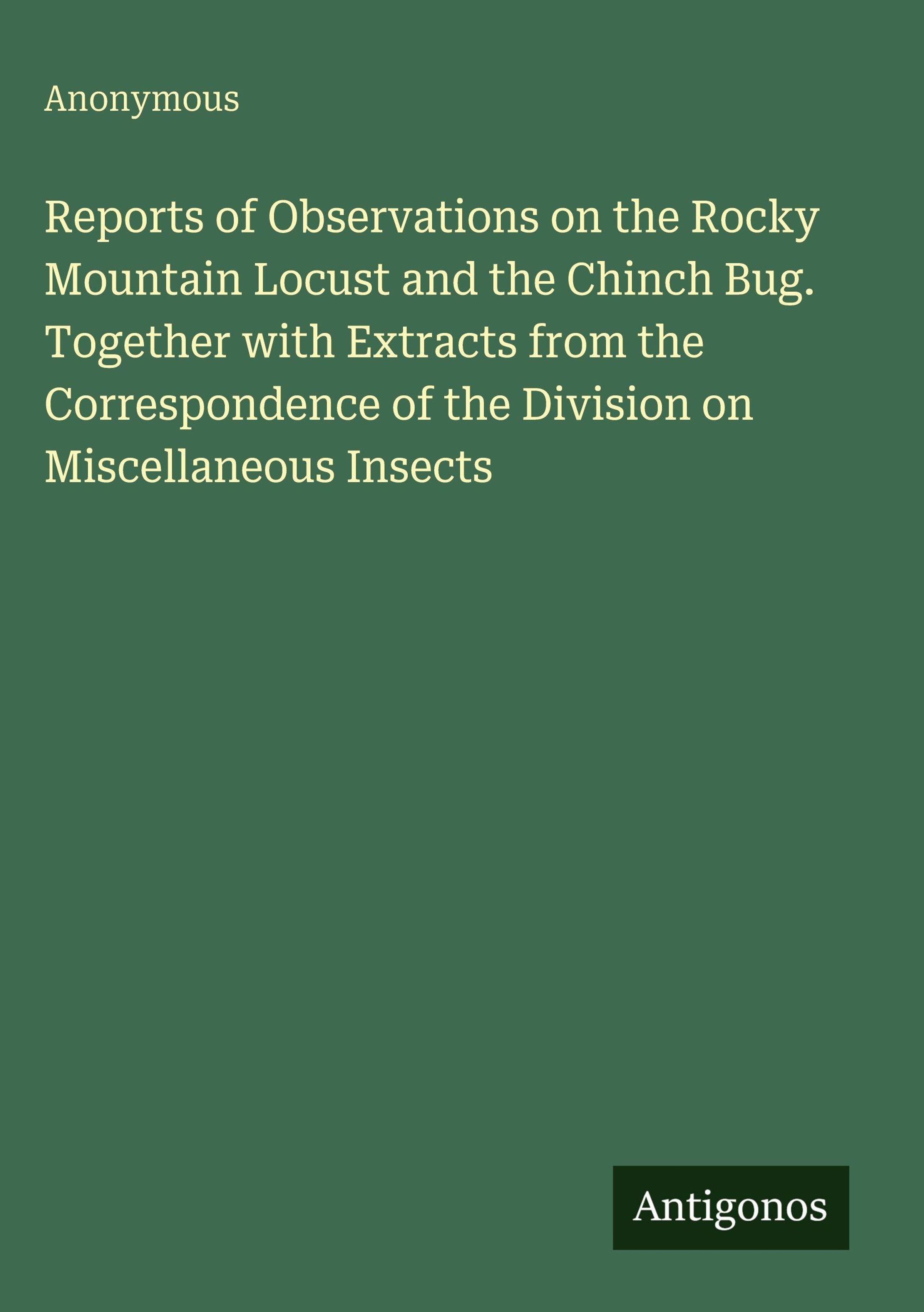 Anonymous: Reports of Observations on the Rocky Mountain Locust and the Chinch Bug. Together with Extracts from..., Gebunden