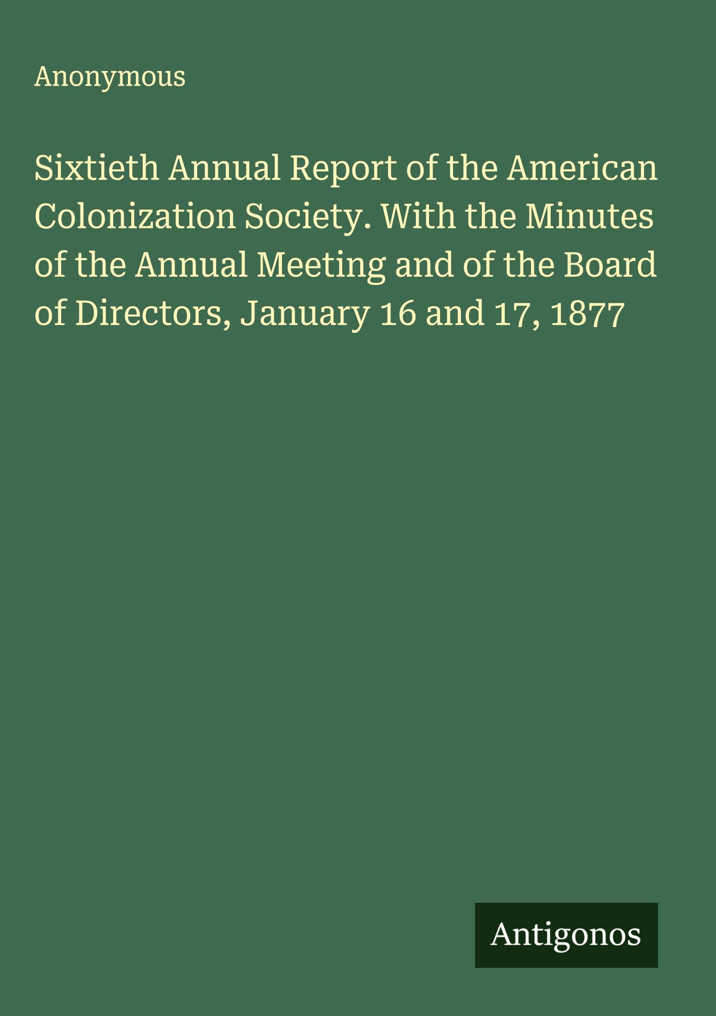 Anonymous: Sixtieth Annual Report of the American Colonization Society. With the Minutes of the Annual Meeting..., Gebunden