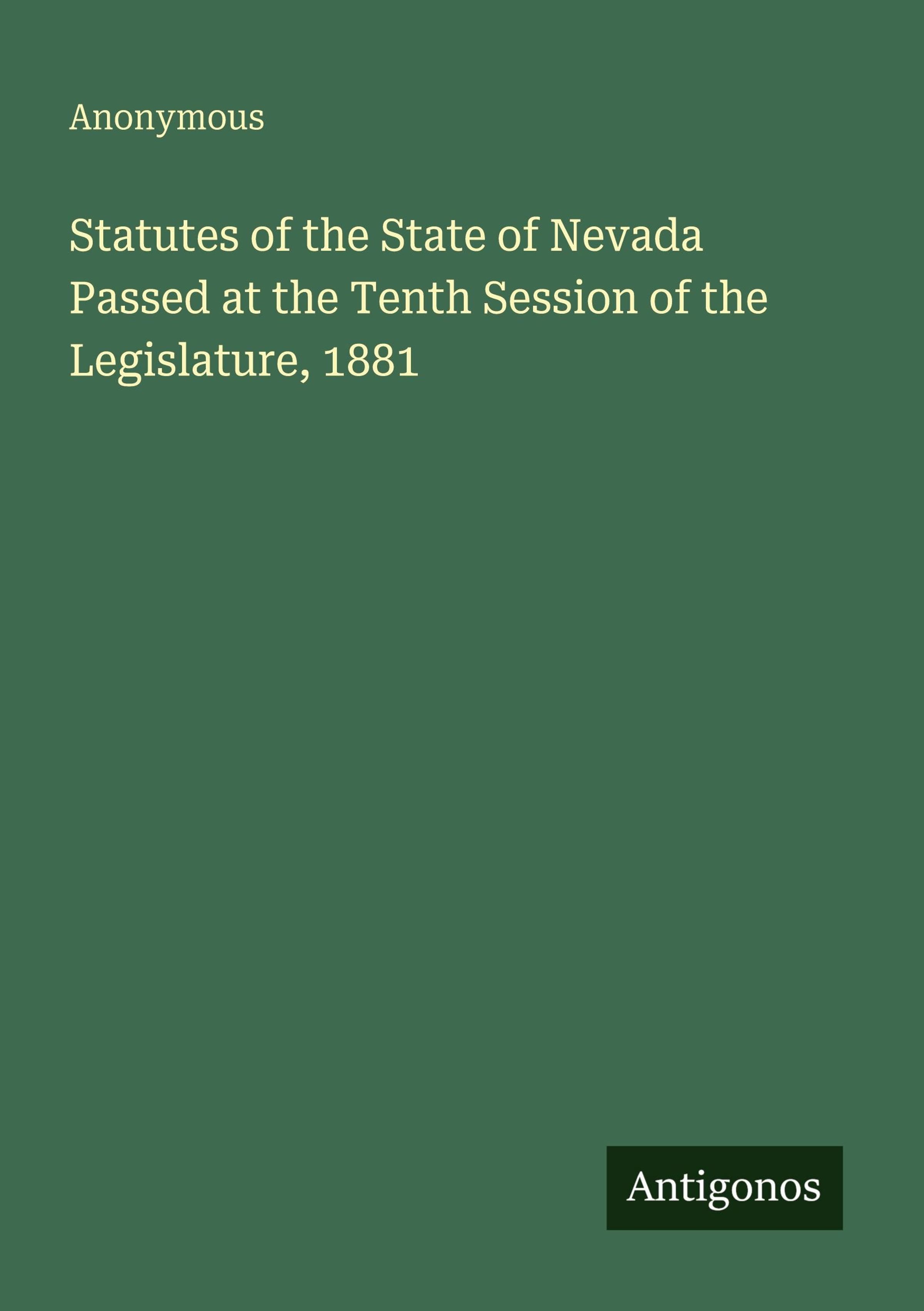 Anonymous: Statutes of the State of Nevada Passed at the Tenth Session of the Legislature, 1881, Kartoniert / Broschiert