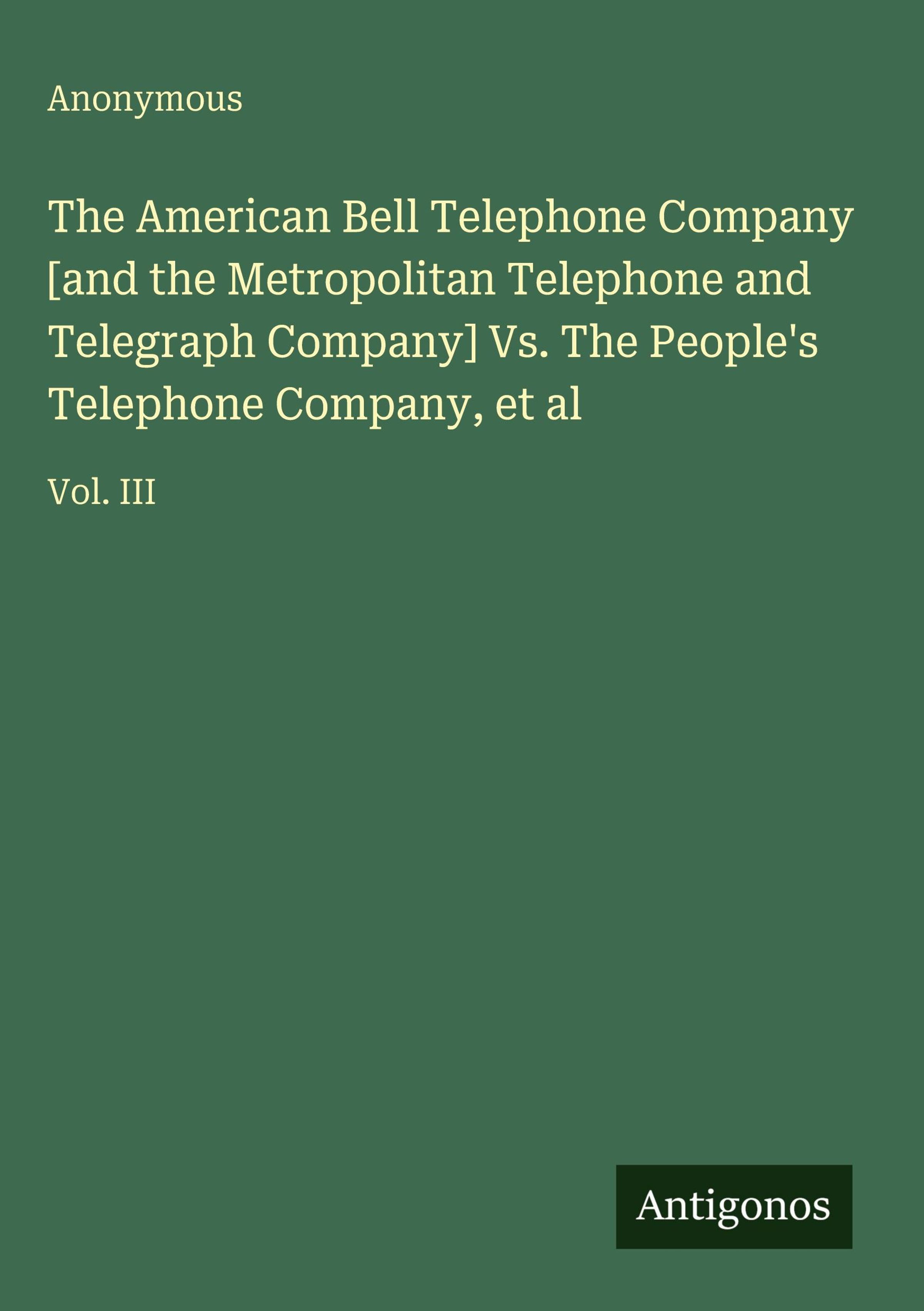 Anonymous: The American Bell Telephone Company [and the Metropolitan Telephone and Telegraph Company] Vs. The..., Gebunden